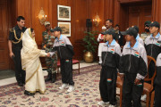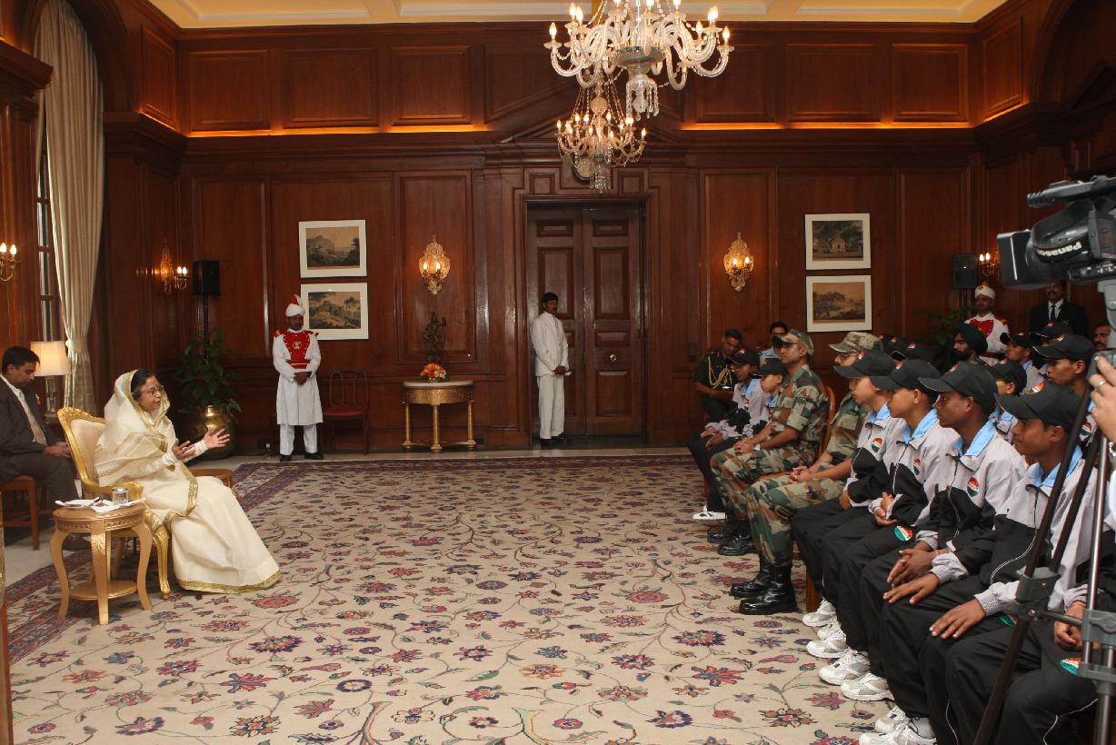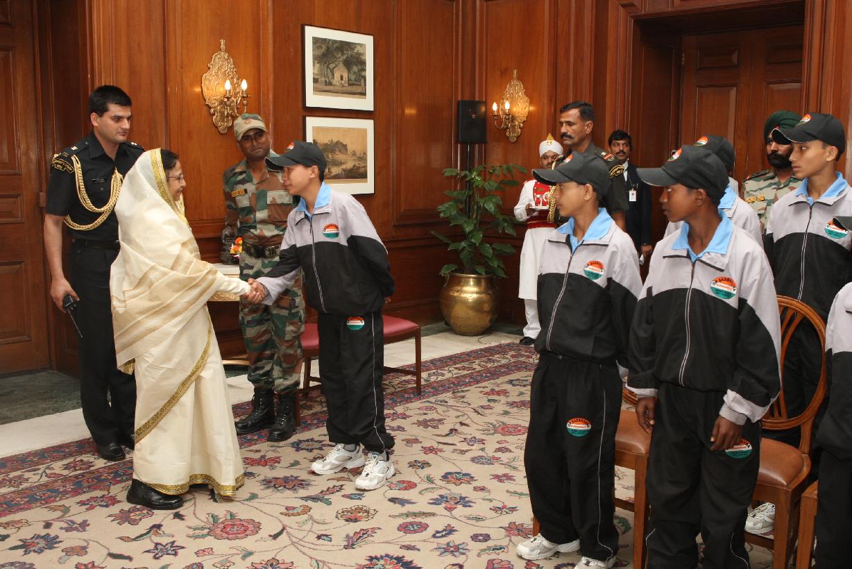 | Caption: | The President of India, Smt Pratibha Patil interacting with the Students of Sonitpur District of Assam who called-on her at Rashtrapati Bhavan in New Delhi on Nov 03, 2011 |