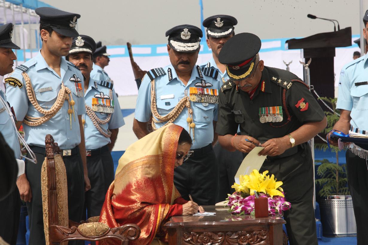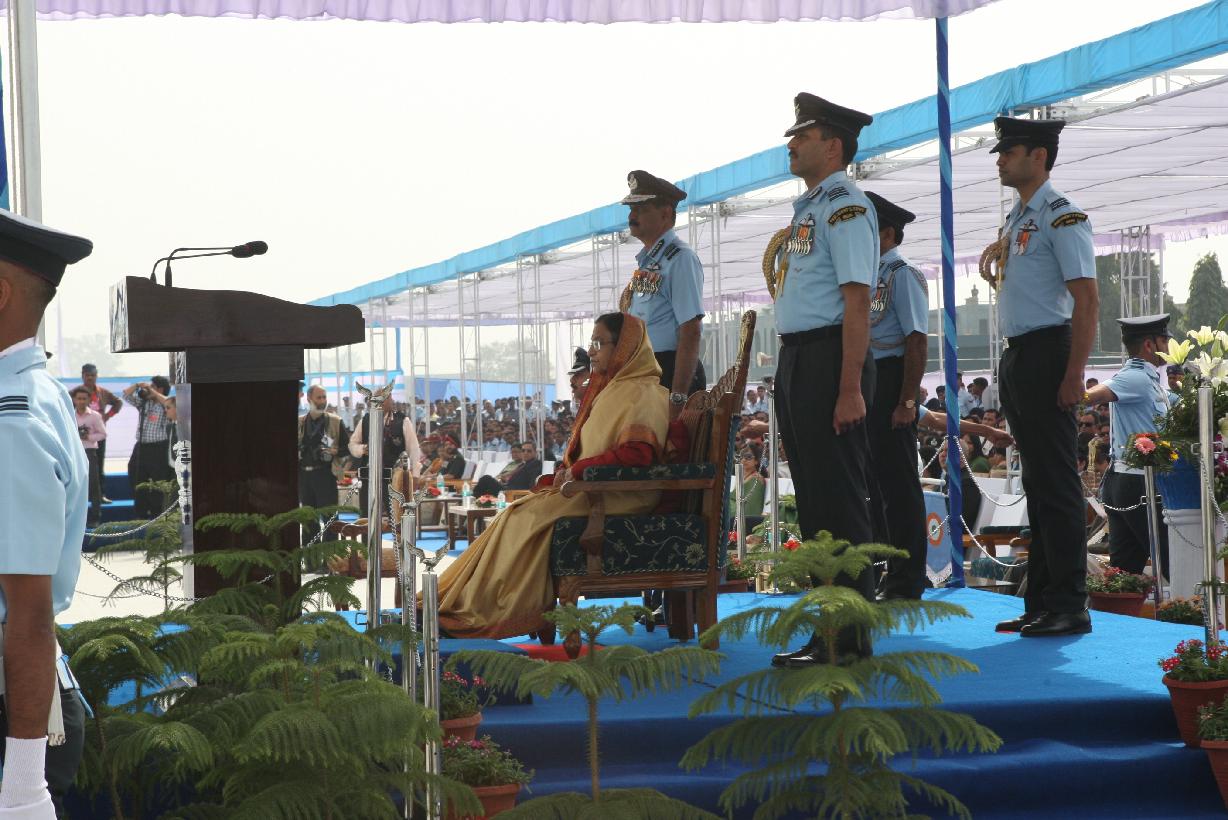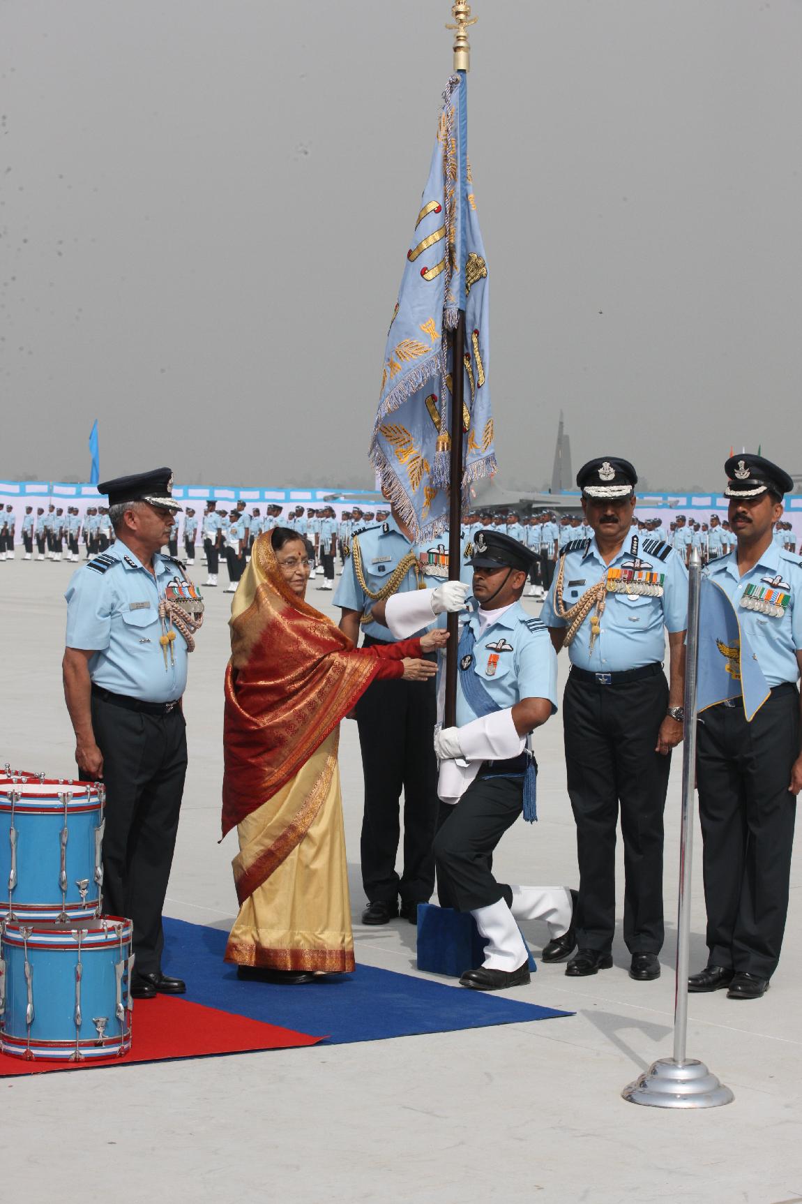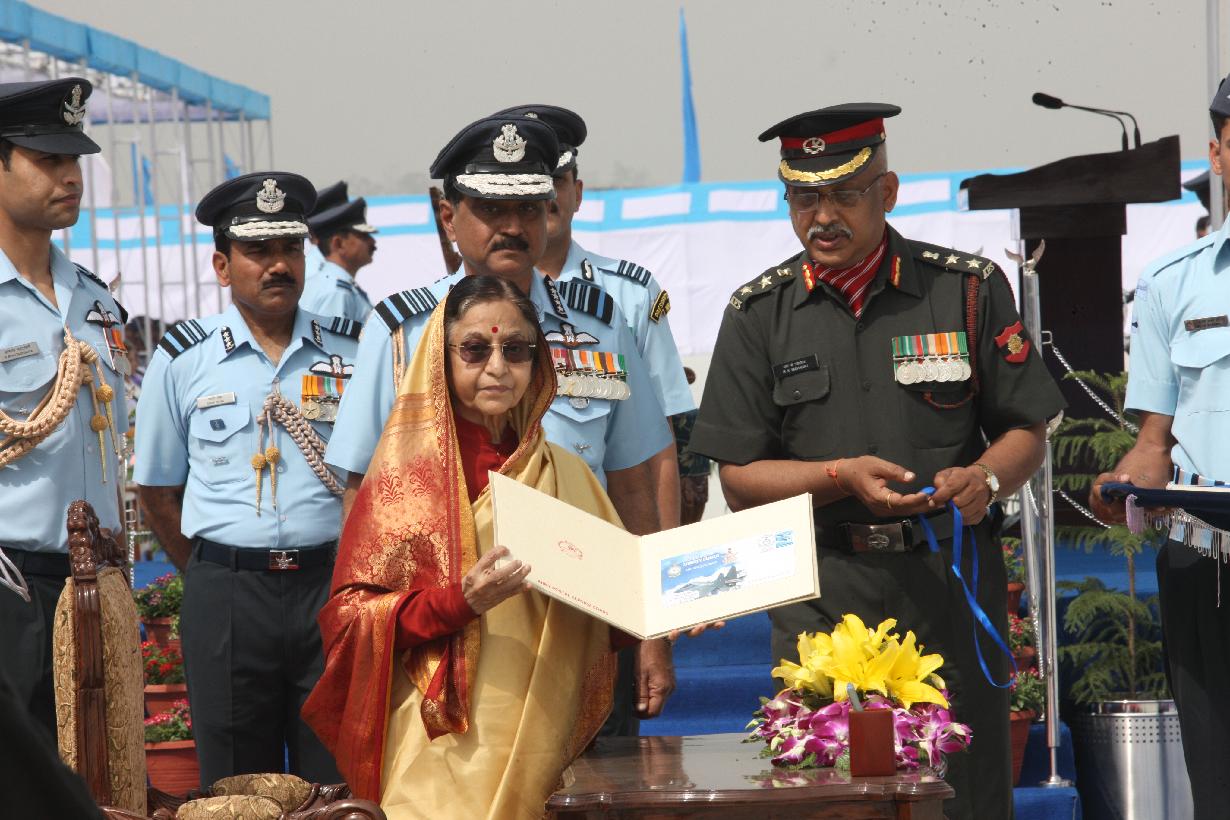 | Caption: | The President of India, Smt Pratibha Devisingh Patil releasing the First Day Cover on the occasion of the presentation of Standards to the 24 Squadron and the 111 Helicopter Unit of the Indian Air Force at Bareilly in Uttar Pradesh on March 06, 2012 |