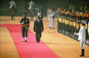 | Caption: | The President of India, Dr A P J Abdul Kalam at the Ceremonial Reception of the President of the Republic of South Africa, His Excellency Mr T M Mbeki and Mrs Zanele Mbeki at the Forecourt of Rashtrapati Bhavan in New Delhi on Oct 16, 2003 |