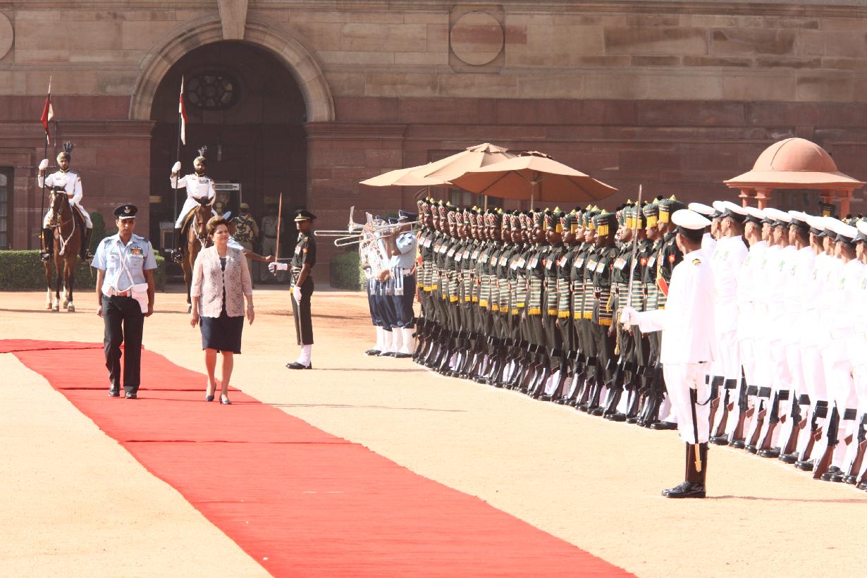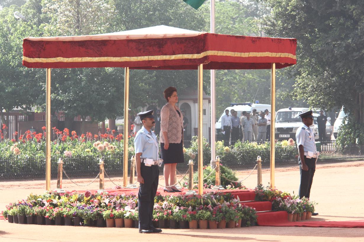| Caption: | The President of India, Smt Pratibha Devisingh Patil at the Ceremonial Reception of the President of the Federative Republic of Brazil, HE Ms Dilma Rousseff at the Forecourt of Rashtrapati Bhavan in New Delhi on March 30, 2012 |