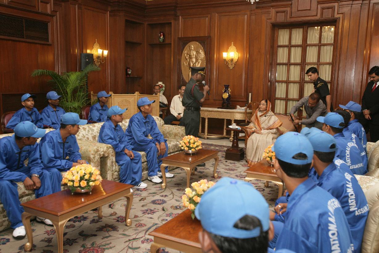 | Caption: | The President of India, Smt Pratibha Devisingh Patil interacting with the Students from Assam at Rashtrapati Bhavan in New Delhi on Oct 08, 2008 |
