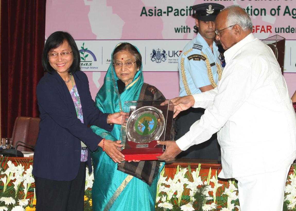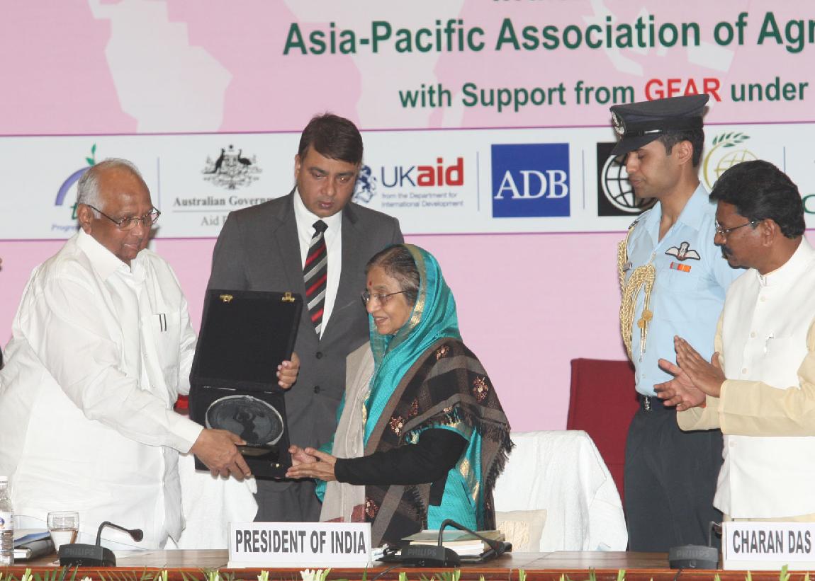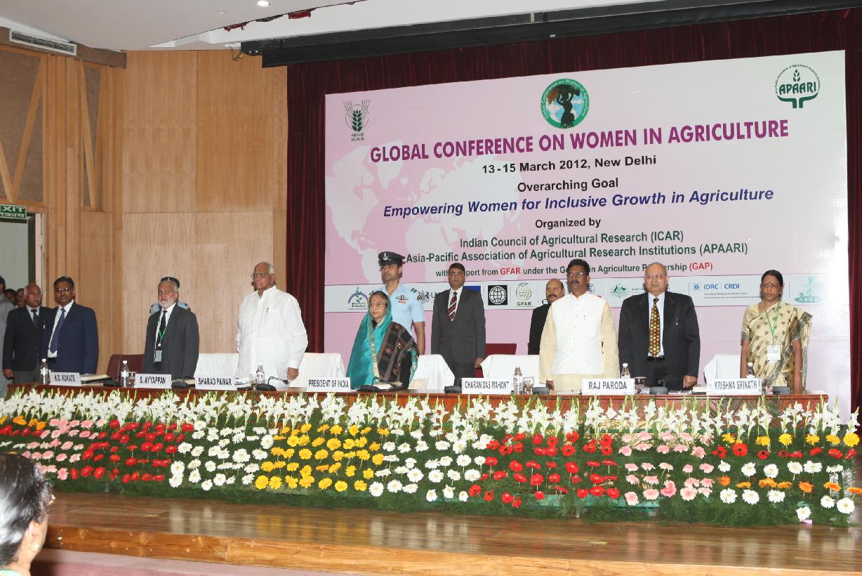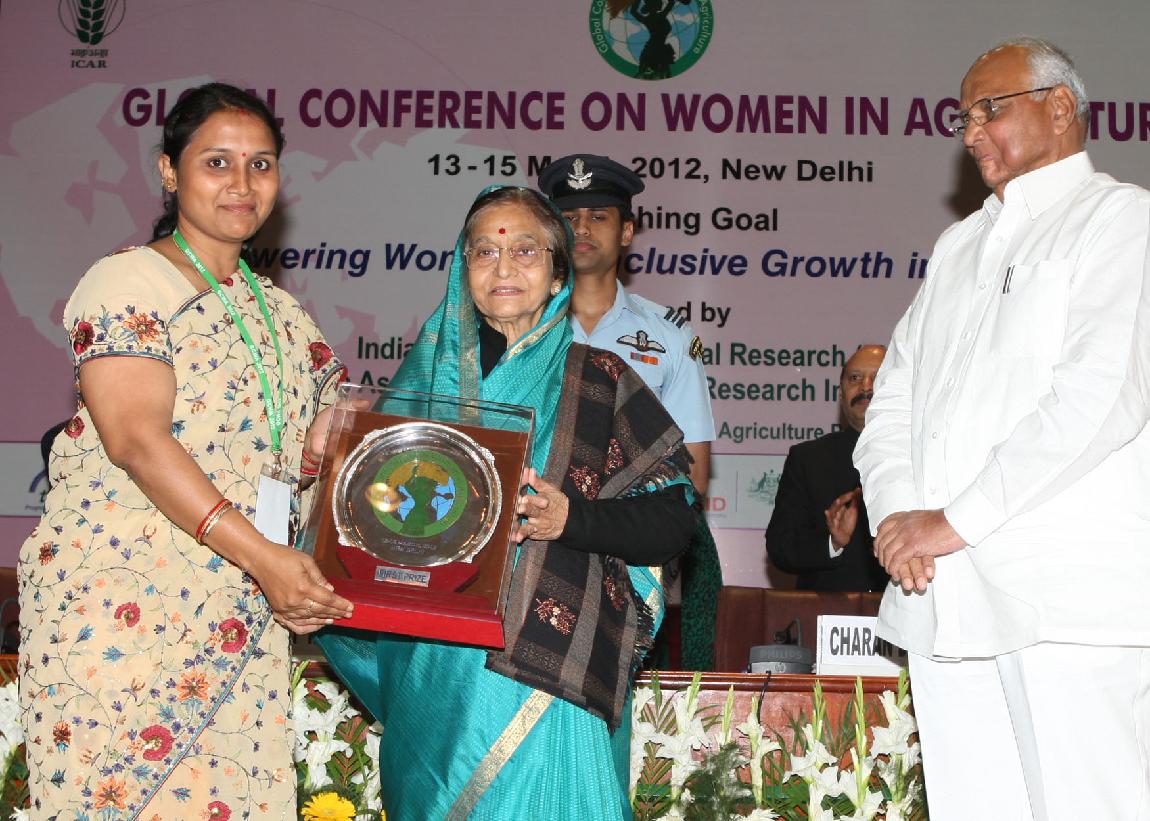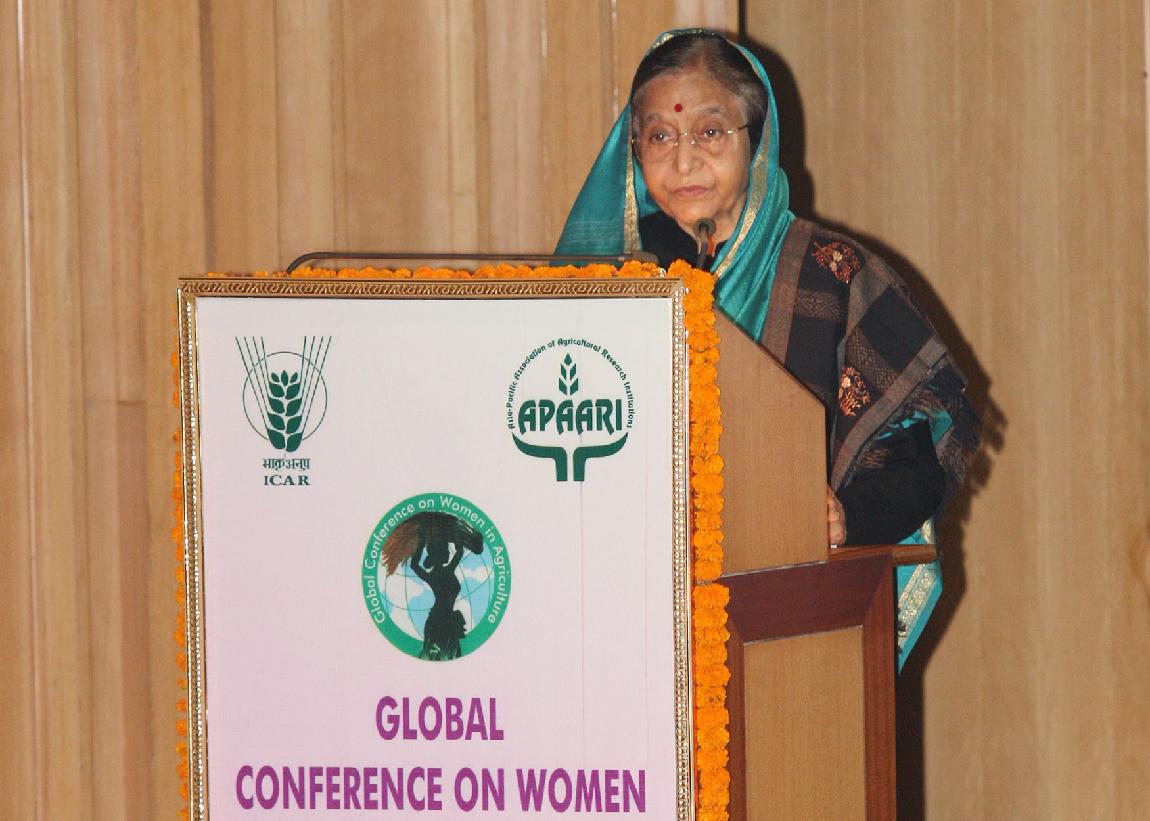 | Caption: | The President of India, Smt Pratibha Devisingh Patil at the Exhibition organized during the Valedictory Function of Global Conference on Women in Agriculture at NASC Complex, Pusa in New Delhi on March 15, 2012 |