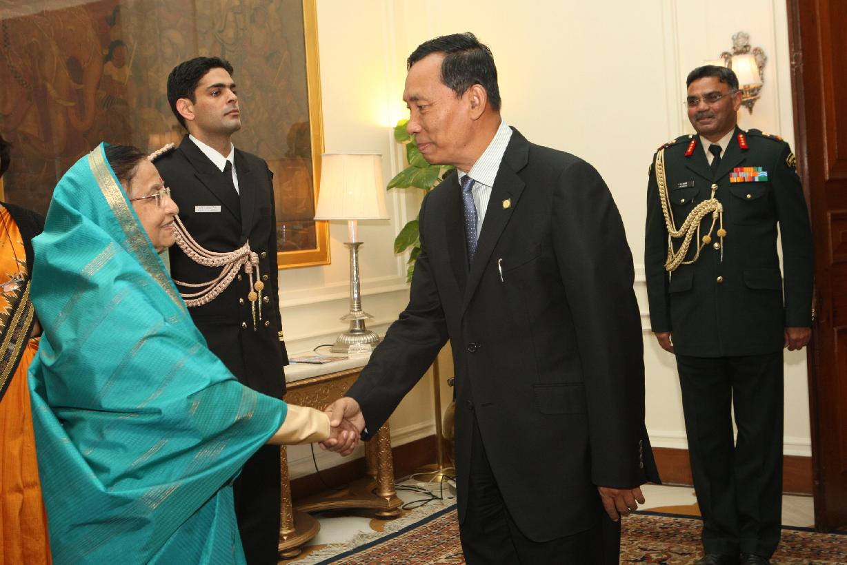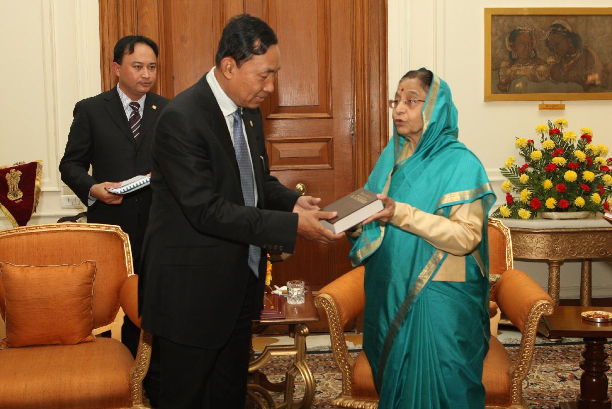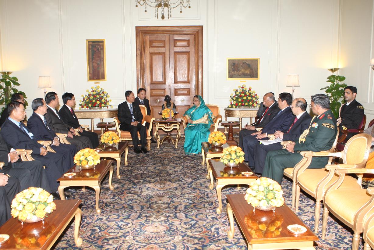 | Caption: | The Speaker of the Pyithu Hluttaw (Lower House of the Parliament of Myanmar), Mr Thura U Shwe Mann calling on the President of India, Smt Pratibha Devisingh Patil at Rashtrapati Bhavan in New Delhi on Dec 14, 2011 |