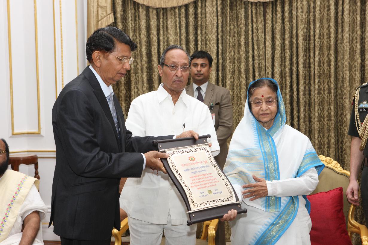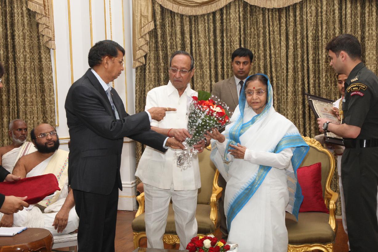 | Caption: | The President of India, Smt Pratibha Devisingh Patil Meeting with Acharya Chanranan & Sagar Surishwar Maharaj in Mumbai on March 13, 2012 |