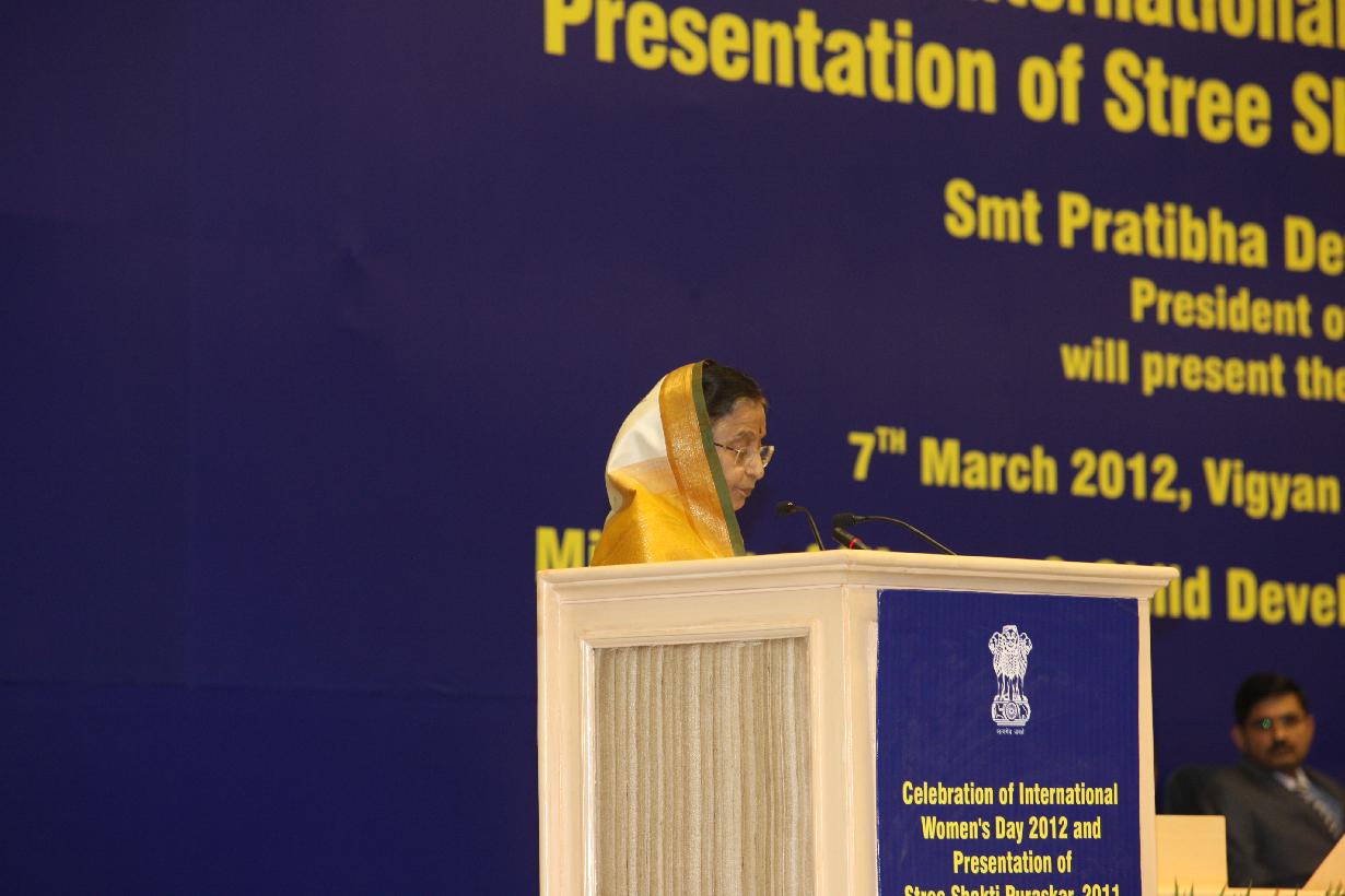 | Caption: | The President of India, Smt Pratibha Devisingh Patil inaugurating the Stree Shakti Puraskar Awards at a Function at Vigyan Bhavan in New Delhi on March 07, 2012 |