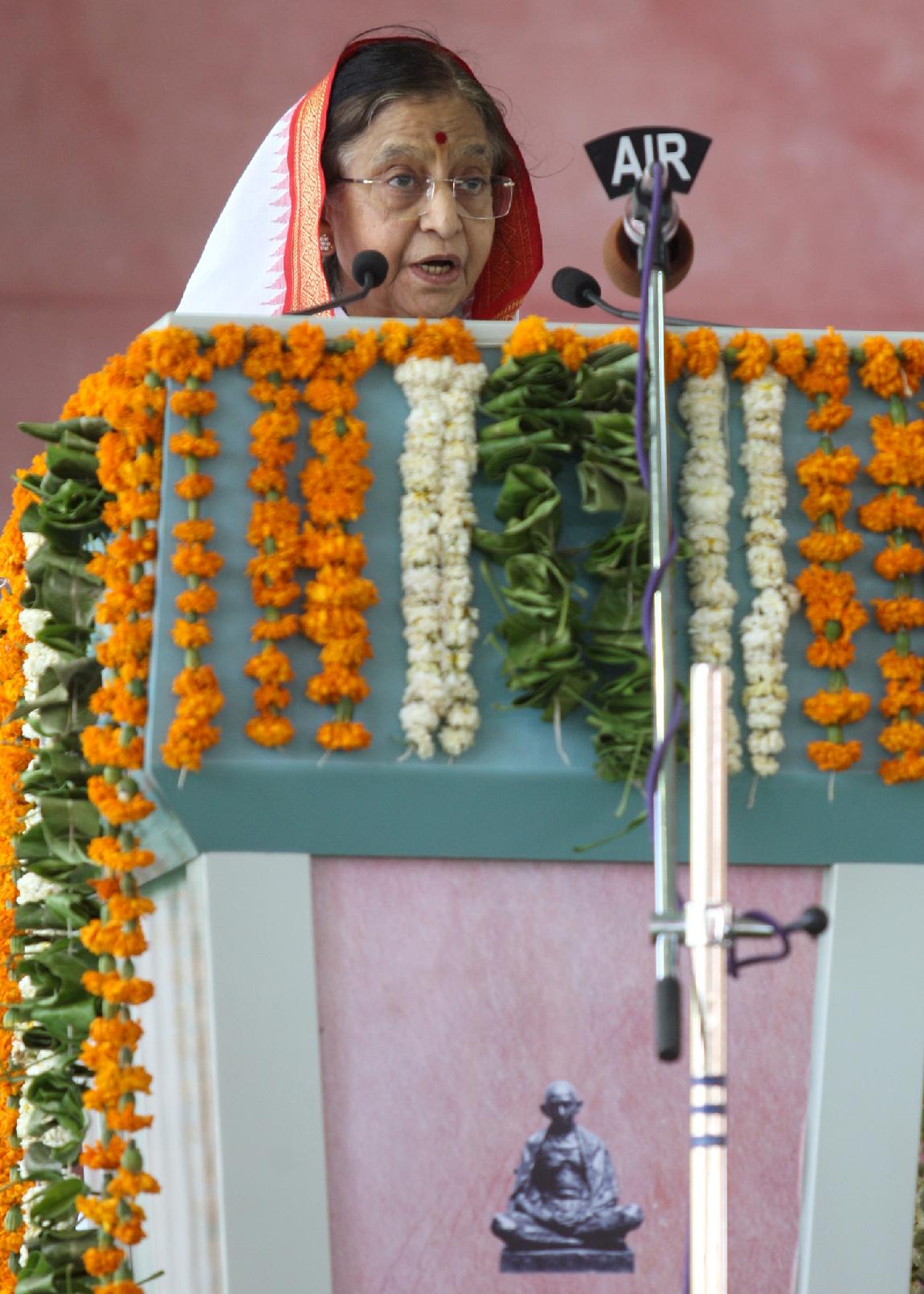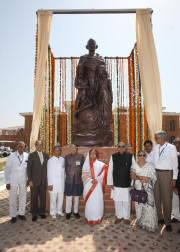 | Caption: | The President of India, Smt Pratibha Devisingh Patil unveiling the Statue of Mahatma Gandhi after its inauguration by her at Gandhi Research Foundation at Jalgaon in Maharashtra on March 25, 2012 |