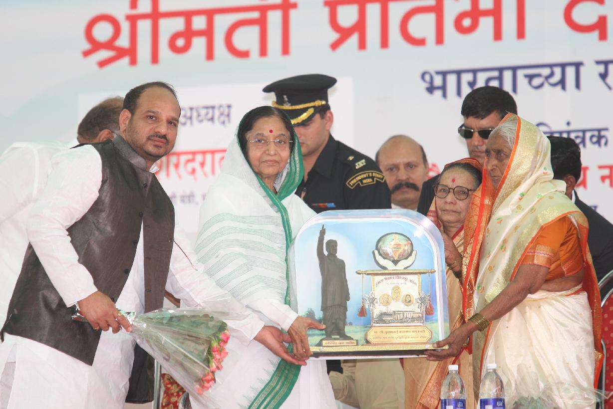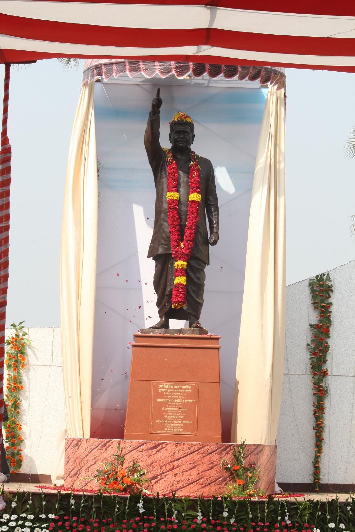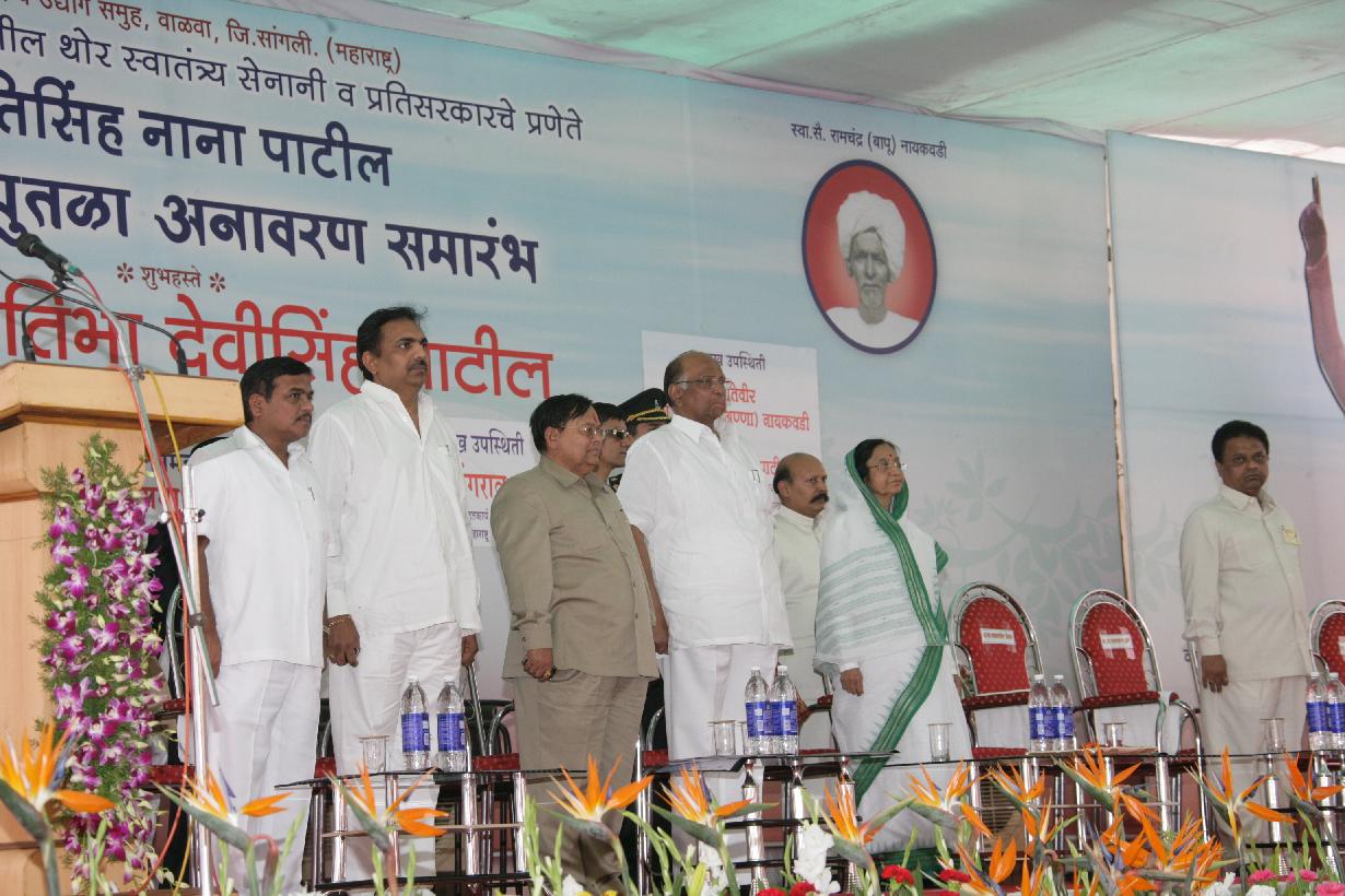 | Caption: | The President of India, Smt Pratibha Devisingh Patil unveiling the Statue of Kranti singh Nana Patil at Walwa of Sangli District in Maharashtra on Feb 19, 2009 |