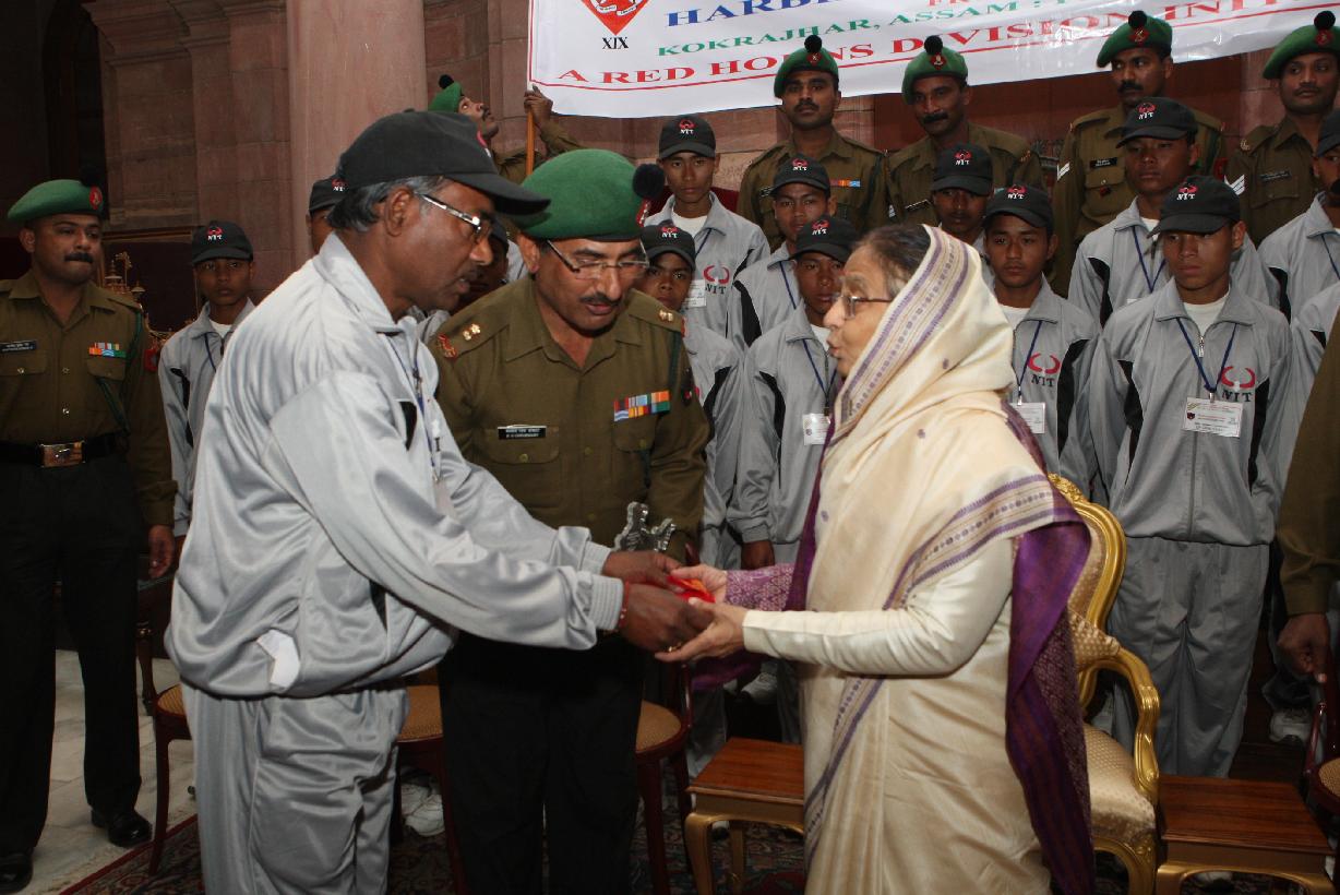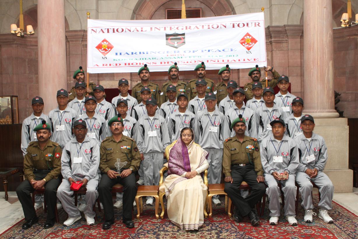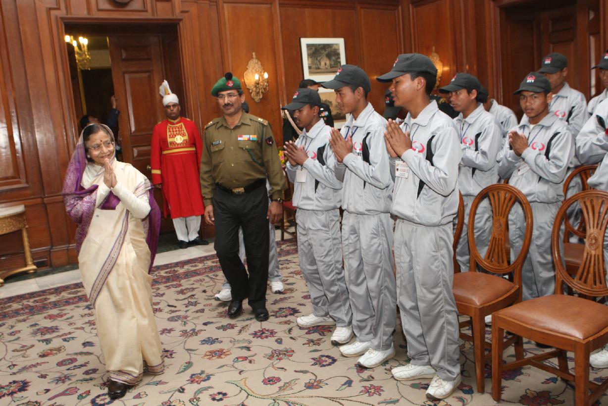 | Caption: | The President of India, Smt Pratibha Devisingh Patil interacting with the Students from Kokrajhar, Assam at Rashtrapati Bhavan in New Delhi on March 01, 2012 |