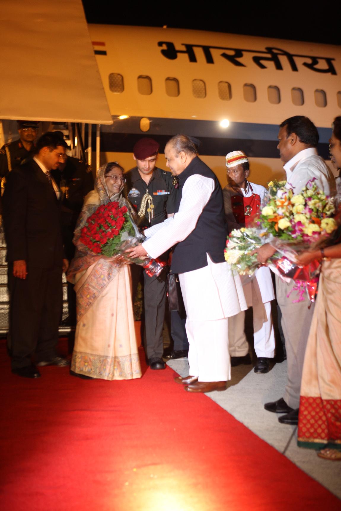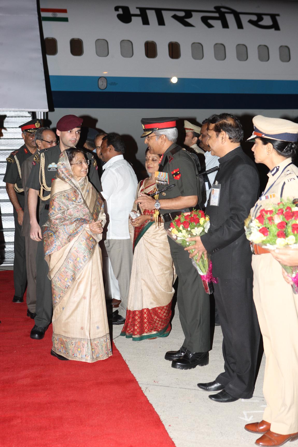 | Caption: | The President of India, Smt Pratibha Devisingh Patil being welcomed by the Governor of Maharashtra, Shri K Sankaranarayanan at Pune Airport in Maharashtra on June 08, 2012 |