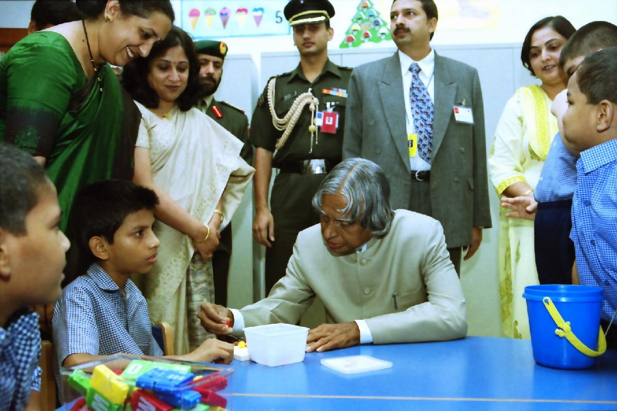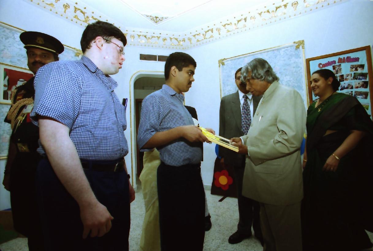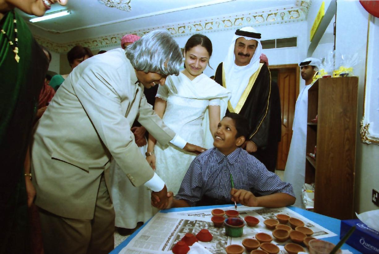 | Caption: | The President of India, Dr A P J Abdul Kalam visiting the Special Care Center in United Arab Emirates on Oct 19, 2003 |