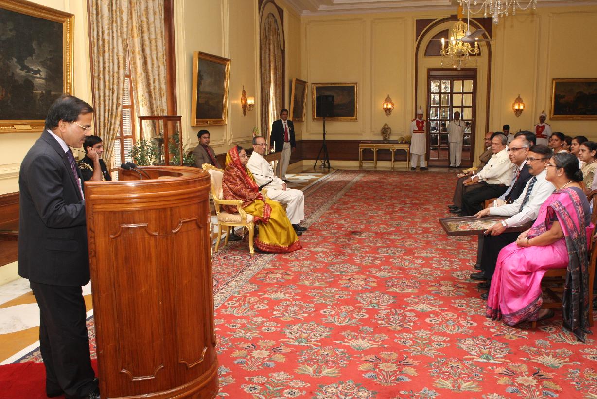 | Caption: | The President of India, Smt Pratibha Patil interacting with Dr Ramesh Godbole and others at Rashtrapati Bhavan in New Delhi on Nov 09, 2011 |
