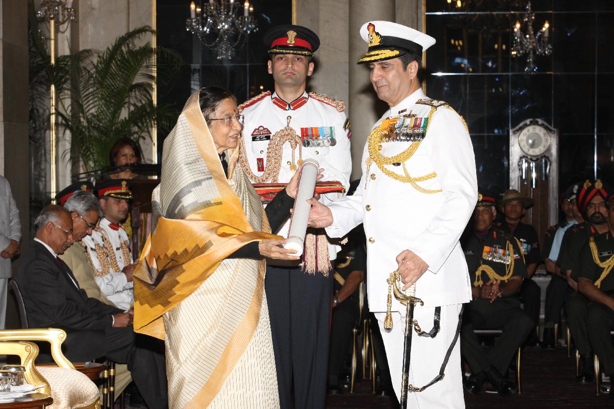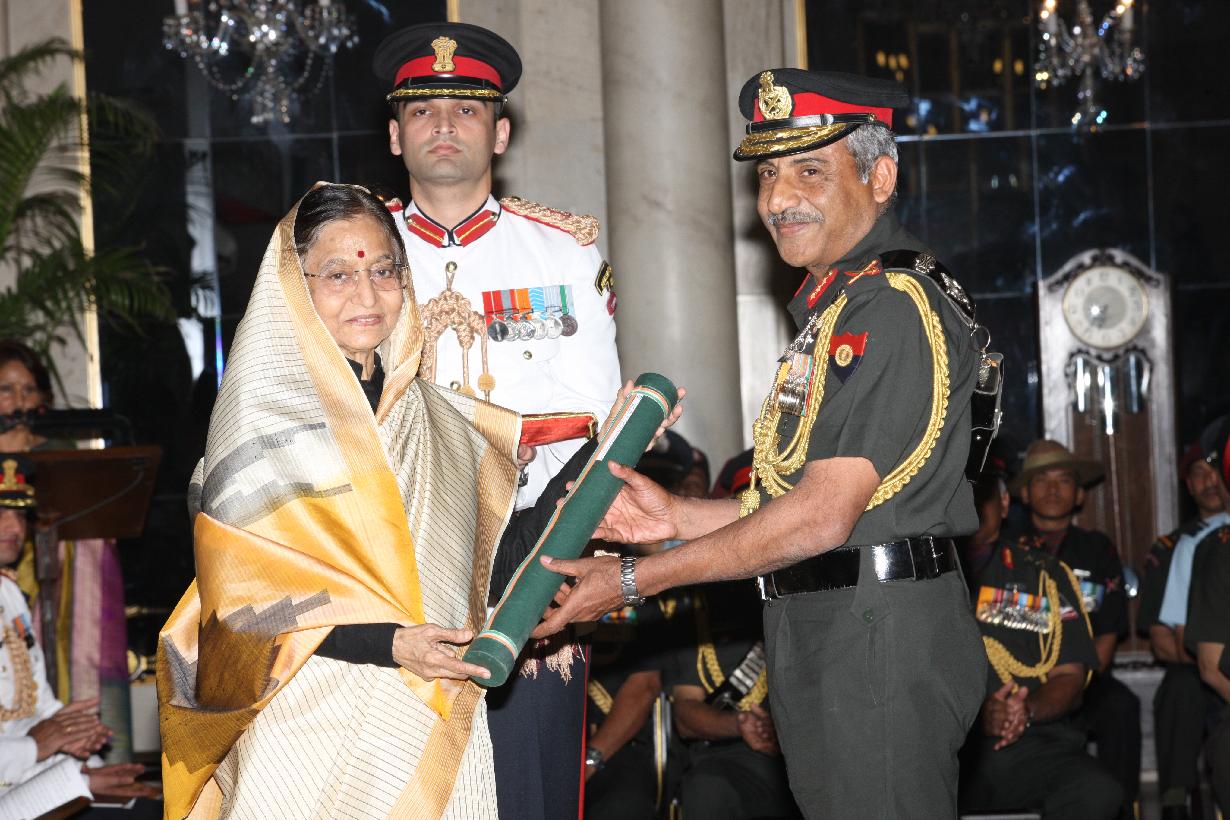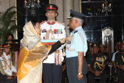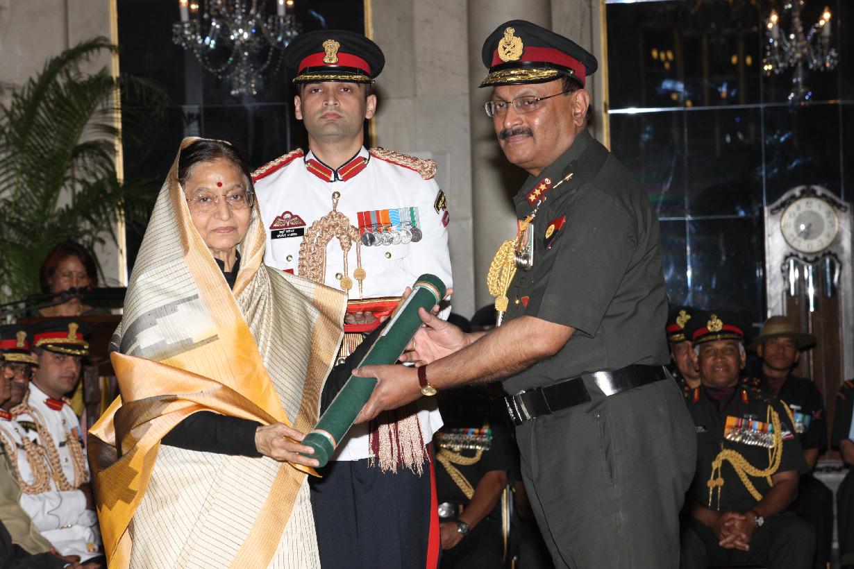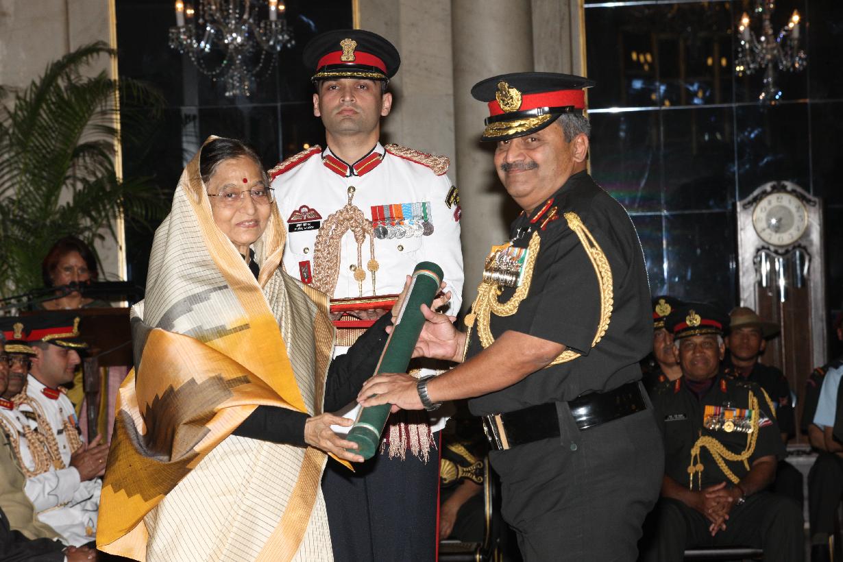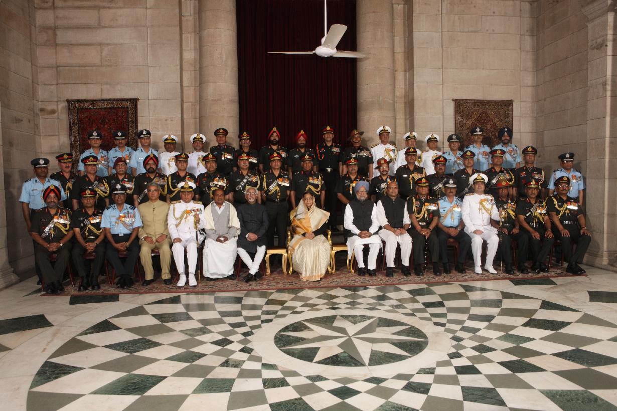 | Caption: | The President of India, Smt Pratibha Devisingh Patil presenting a Defence Investiture award posthumously to a Next of Kin at the Ashoka Hall of Rashtrapati Bhavan on March 14, 2012 |