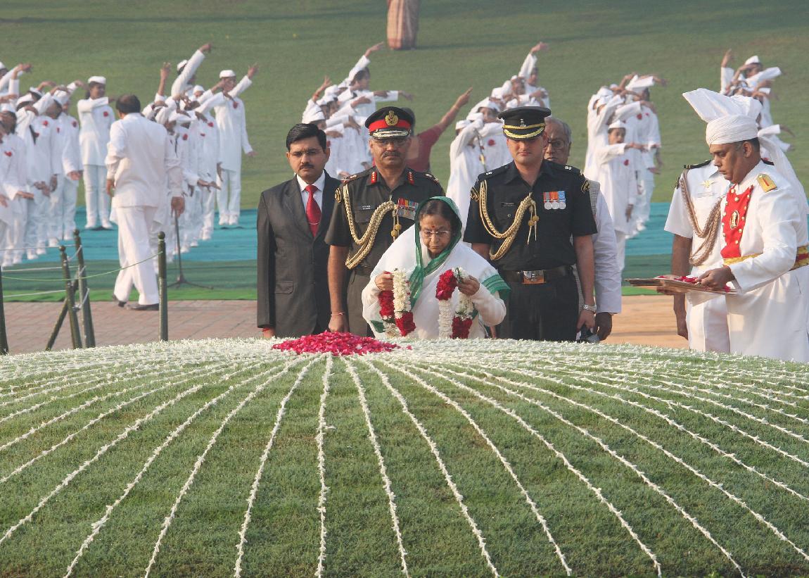 | Caption: | The President of India, Smt Pratibha Patil paying homage at the Samadhi of the Former Prime Minister of India, Late Pandit Jawaharlal Nehru on his 122nd Birth Anniversary at Shantivan in New Delhi on Nov 14, 2011 |