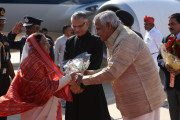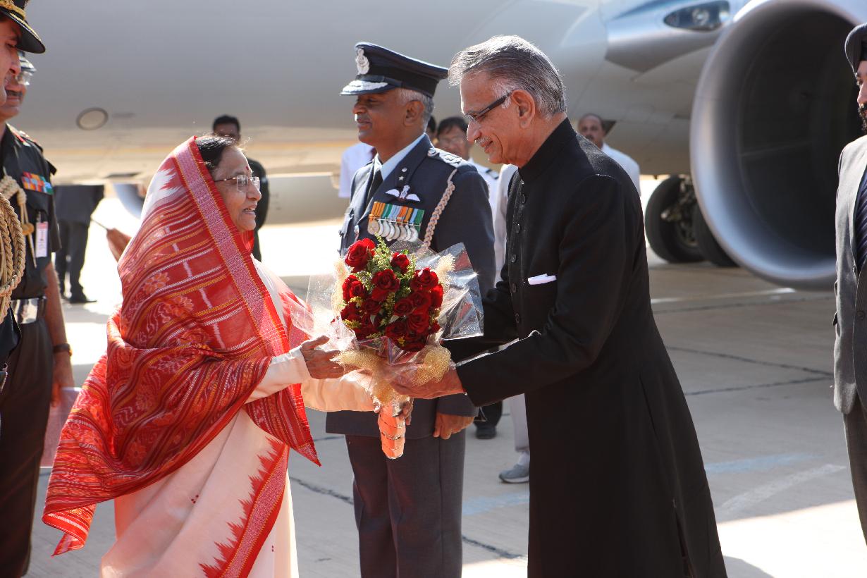 | Caption: | The President of India, Smt Pratibha Patil being welcomed by the Governor of Rajasthan, Shri Shivraj Patil at Bikaner Airport in Rajasthan on Nov 17, 2011 |