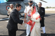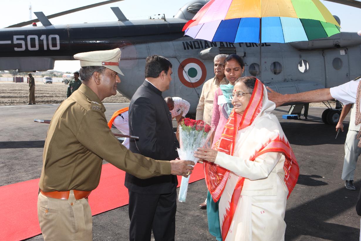 | Caption: | The President of India, Smt Pratibha Patil during arrival at Village Bandhnau Dikhnada Helipad in Rajasthan on Nov 17, 2011 |