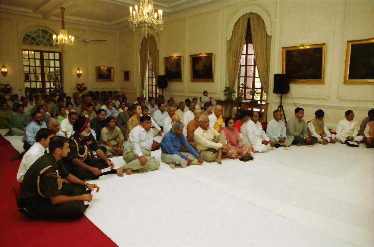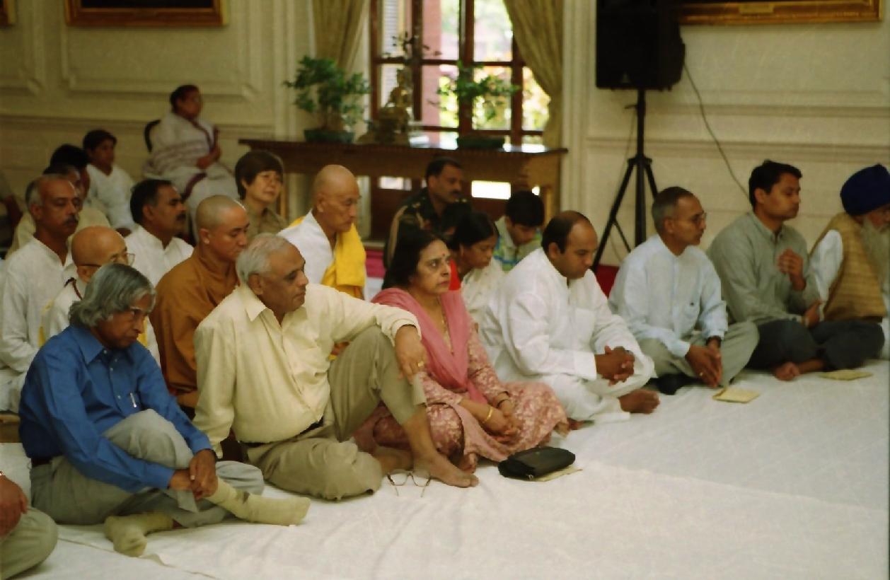 | Caption: | The President of India, Dr A P J Abdul Kalam at the Sarva Dharma Prathana Sabha at the Yellow Drawing Room of Rashtrapati Bhavan in New Delhi on Oct 02, 2003 |
