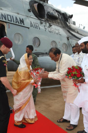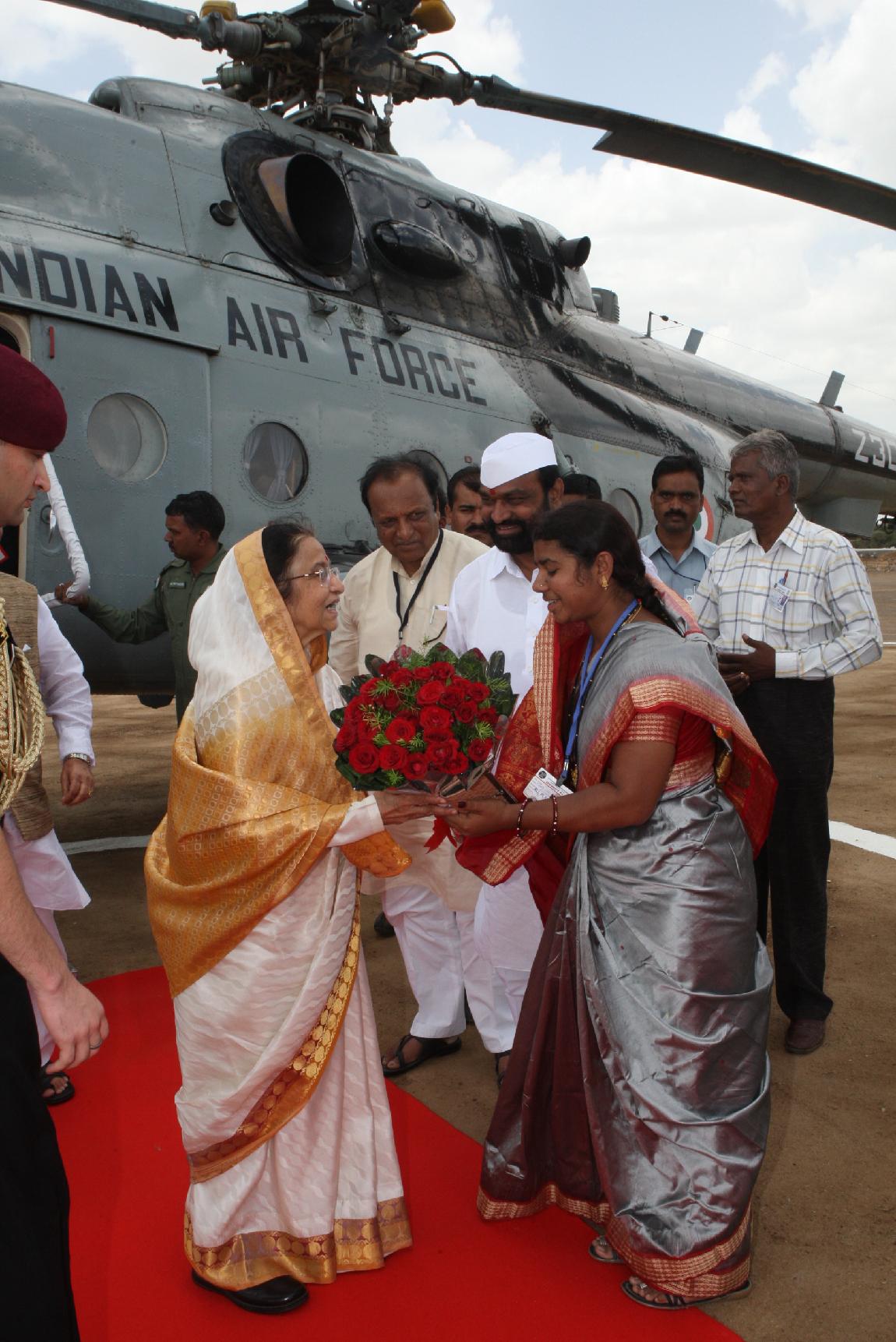 | Caption: | The President of India, Smt Pratibha Devisingh Patil arriving at Pandharpur Helipad in Solapur in Maharashtra on June 10, 2012 |