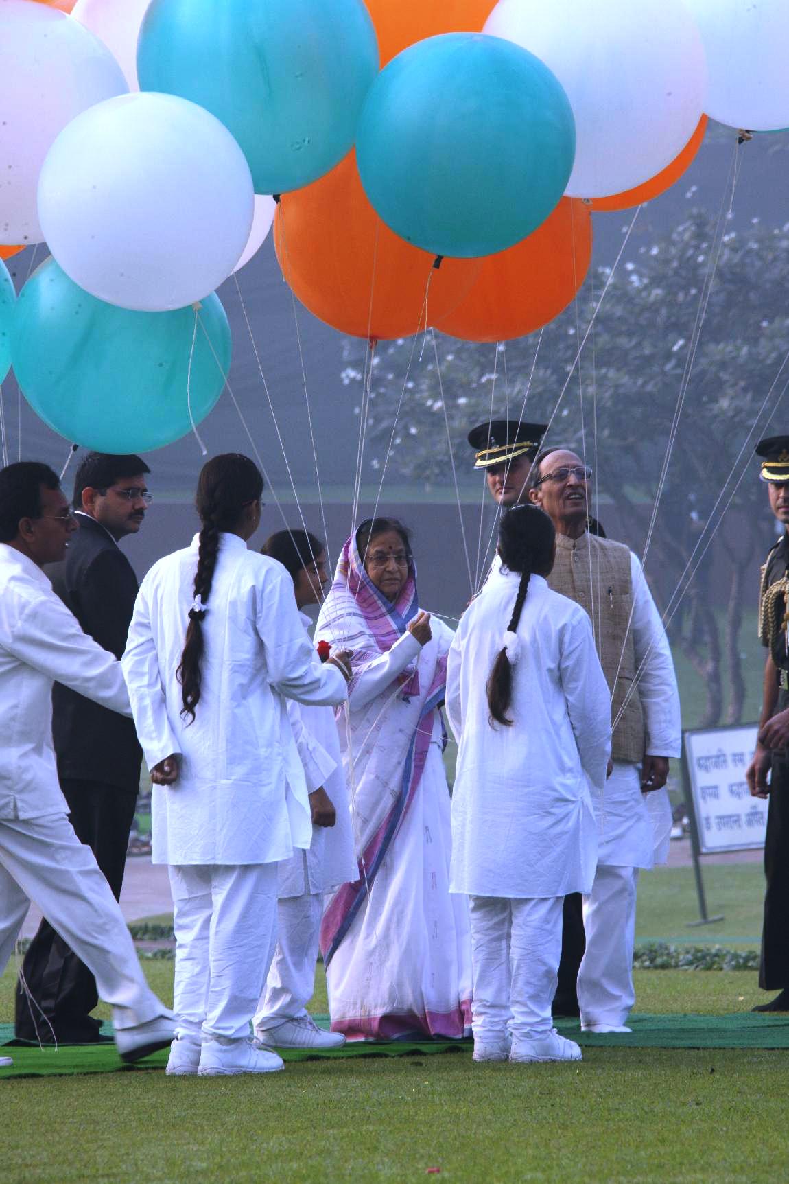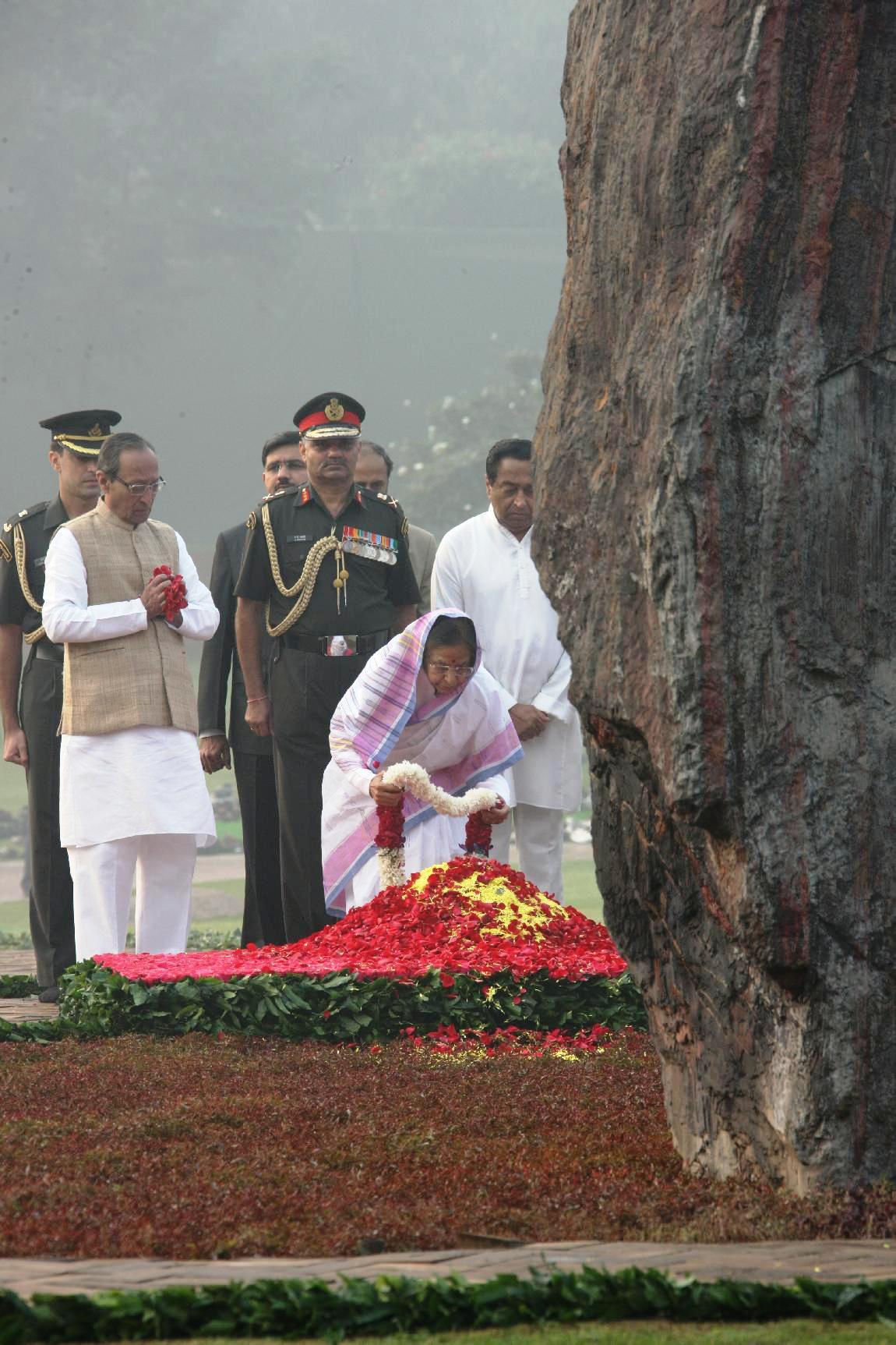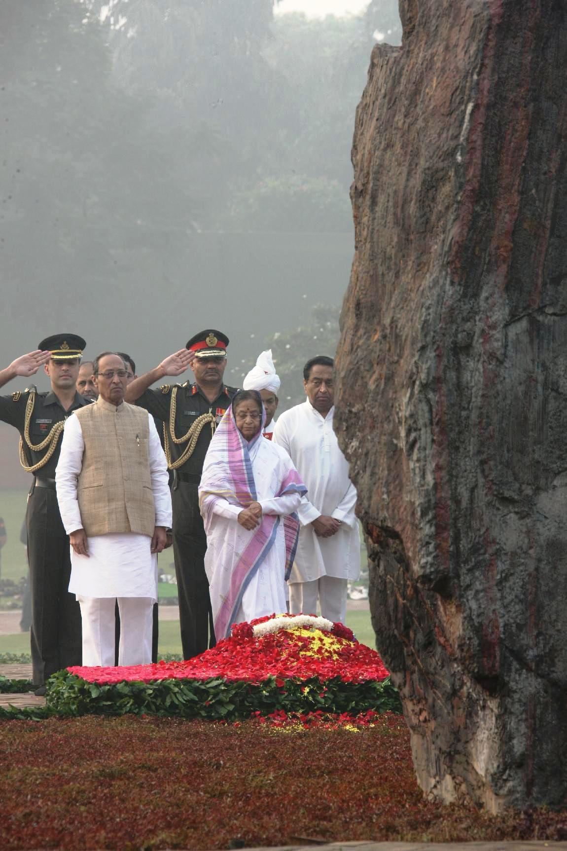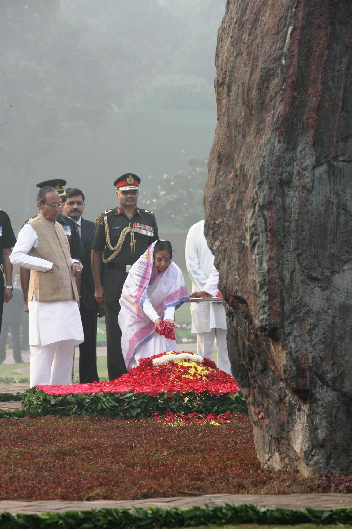 | Caption: | The President of India, Smt Pratibha Patil paying homage at the Samadhi of the Former Prime Minister of India, Late Smt Indira Gandhi on her 94th Birth Anniversary at Shakti Sthal in New Delhi on Nov 19, 2011 |