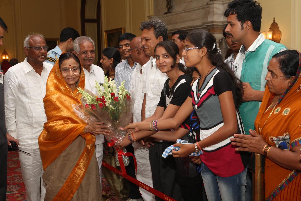 | Caption: | The President of India, Smt Pratibha Devisingh Patil interacting with Shri S S Patil and others at Rashtrapati Bhavan in New Delhi on June 27, 2012 |