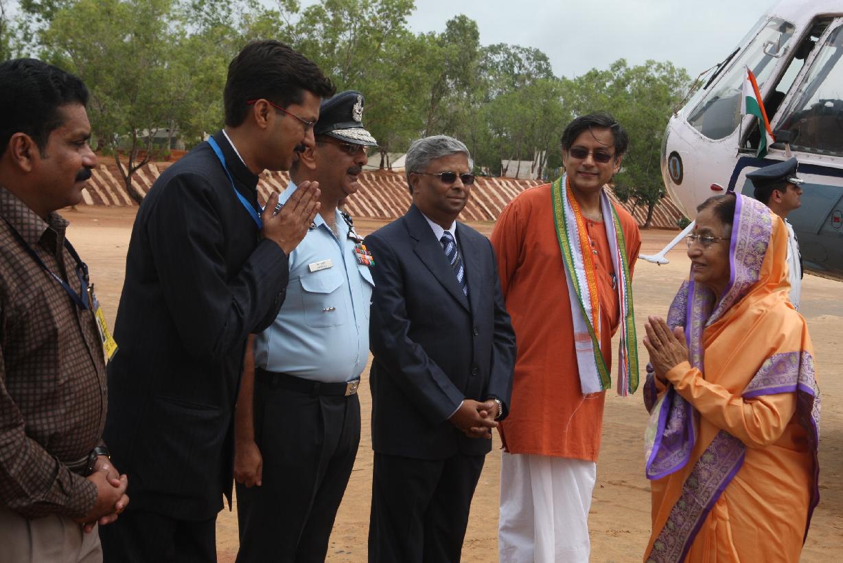 | Caption: | The President of India, Smt Pratibha Devisingh Patil arriving at CRPF Helipad in Kerala on Aug 13, 2010 |
