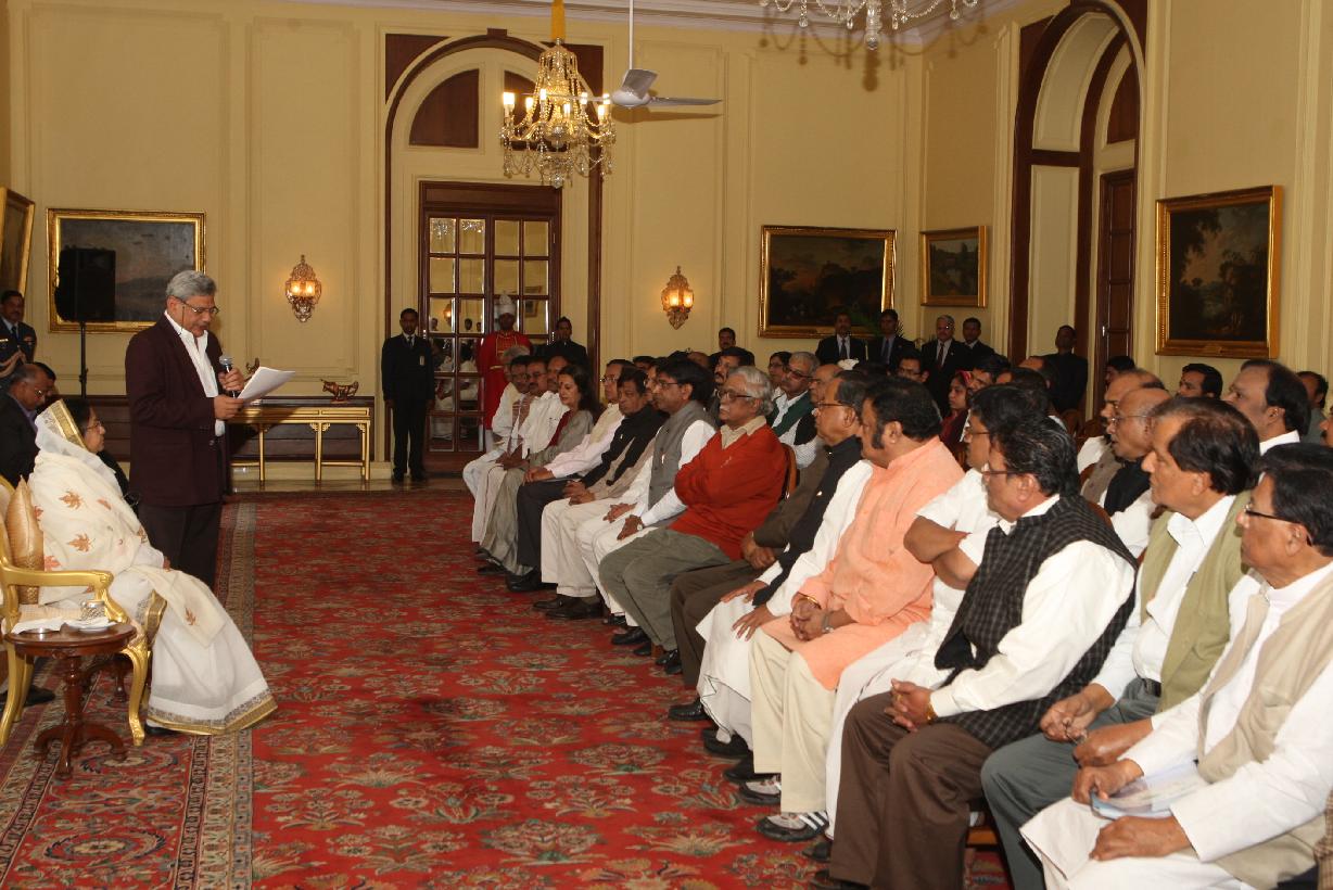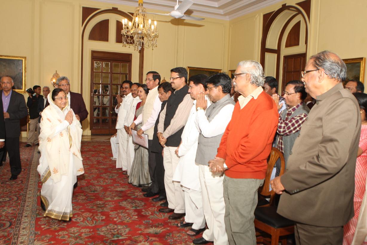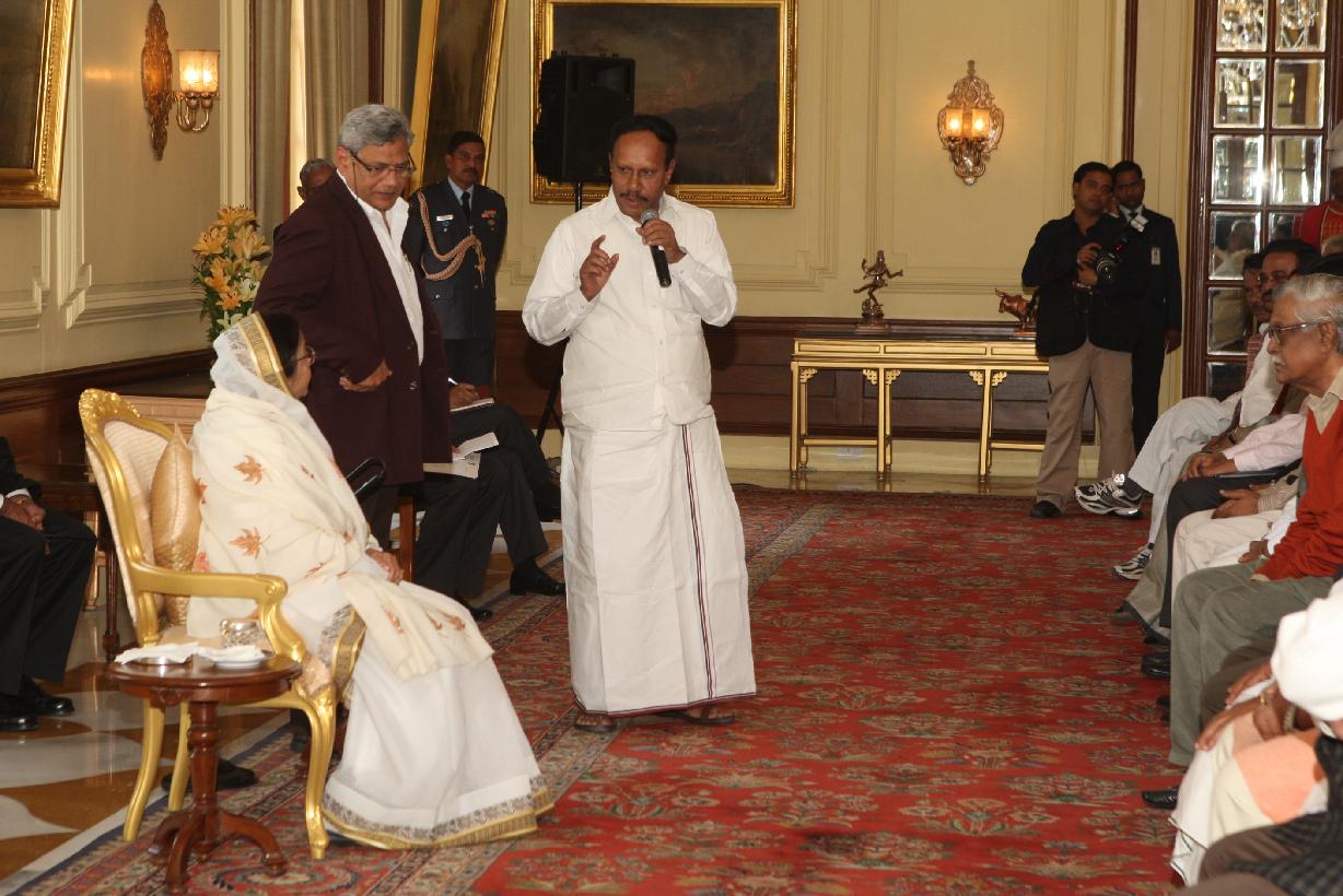 | Caption: | The President of India, Smt Pratibha Devisingh Patil interacting with Shri Sitaram Yechury and others at Rashtrapati Bhavan New Delhi on Nov 30, 2010 |