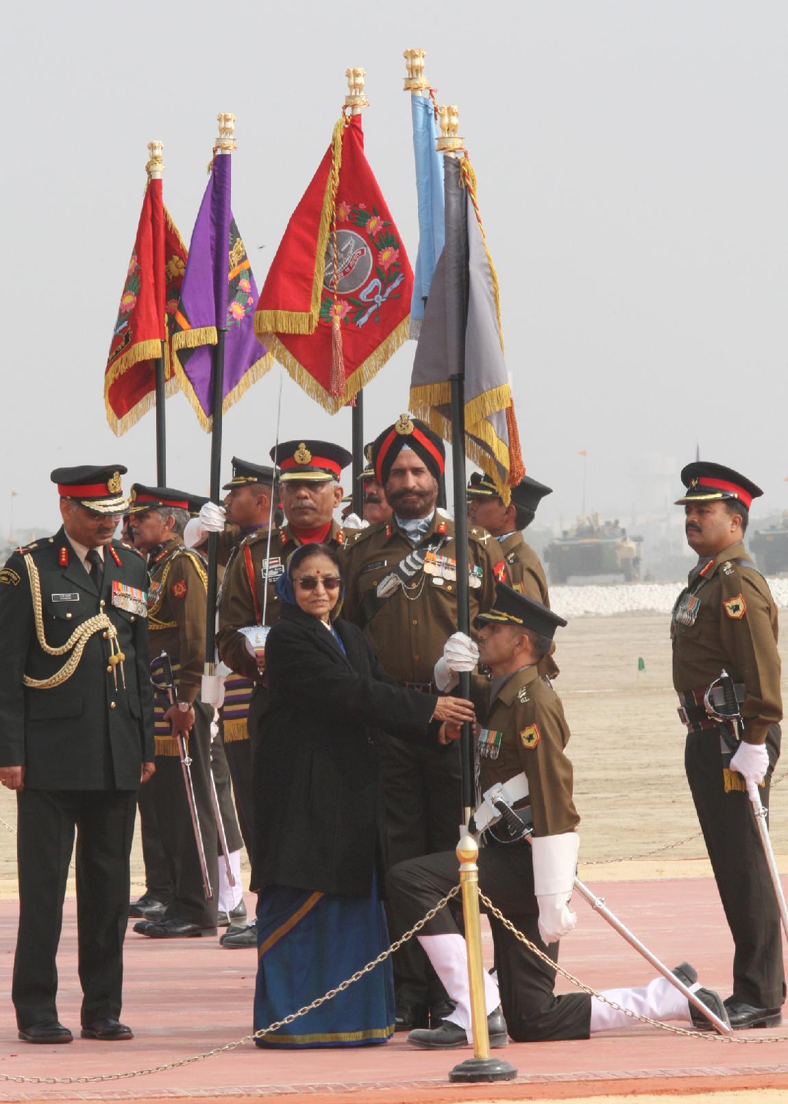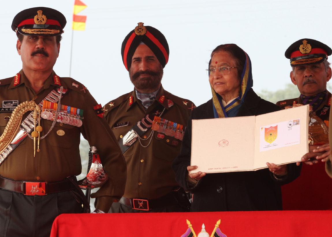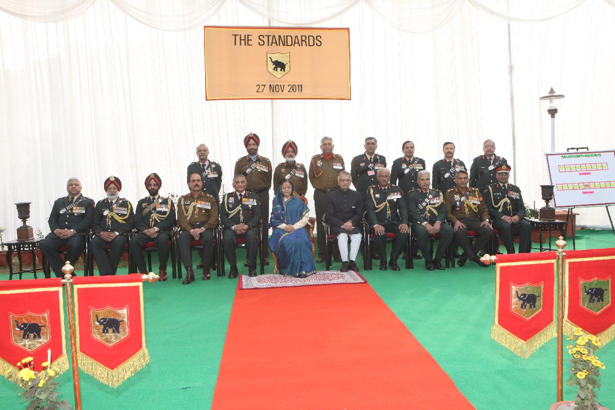 | Caption: | The President of India, Smt Pratibha Patil releasing the First Day Cover on the occasion of the Presentation of Standards to Five Different Army Regiments at Patiala in Punjab on Nov 27, 2011 |