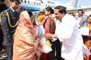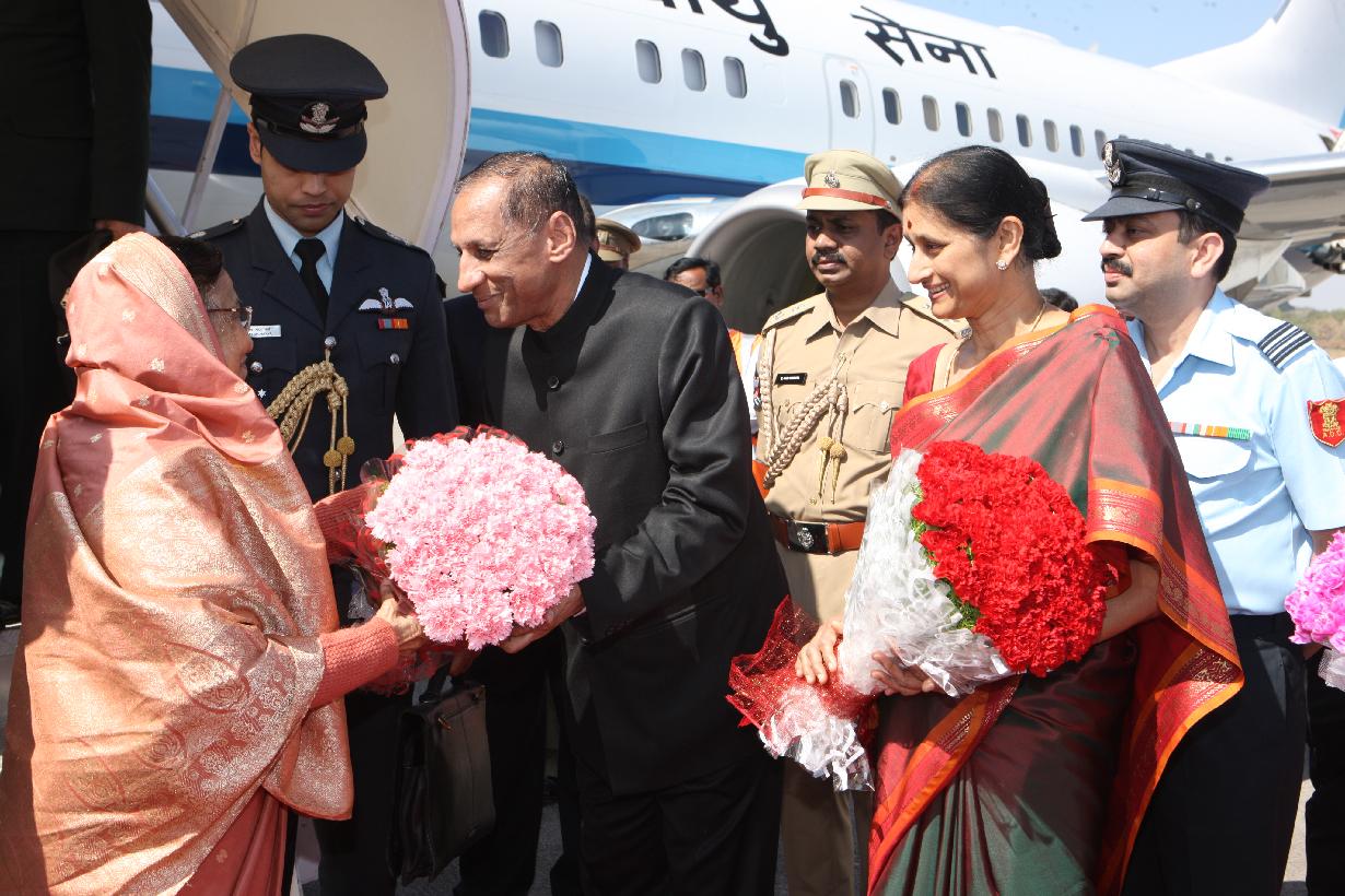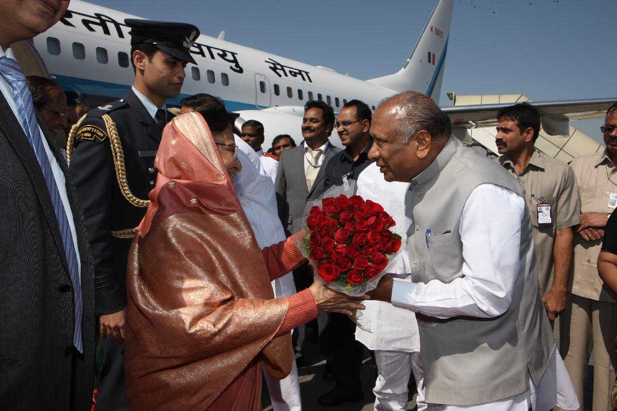 | Caption: | The President of India, Smt Pratibha Devisingh Patil being welcomed by the Governor of Andra Pradesh, Shri E S L Narasimhan and Chief Minister, Shri Kiran Kumar Reddy at Hyderabad Airport in Andhra Pradesh on Dec 25, 2011 |