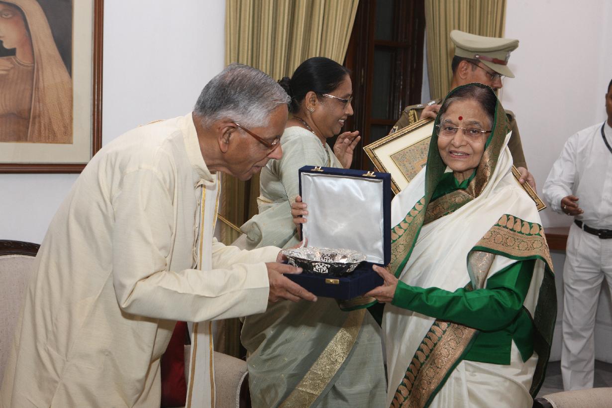 | Caption: | The President of India, Smt Pratibha Patil exchanging Gifts with the Governor of West Bengal, Shri M K Narayanan at Kolkata Raj Bhavan in West Bengal on Nov 29, 2011 |