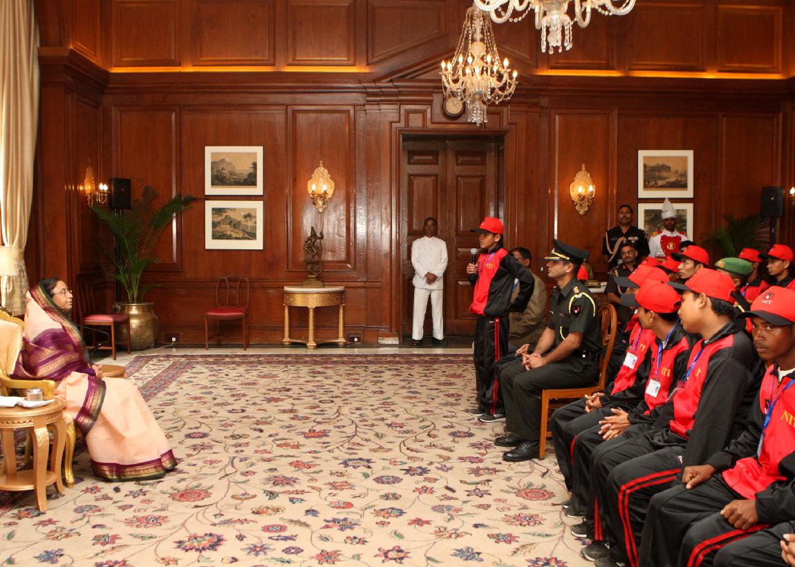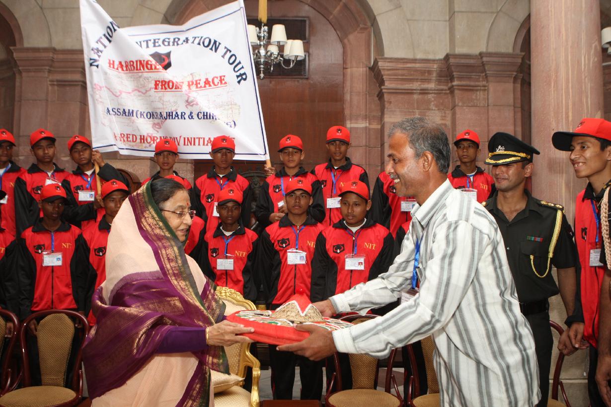 | Caption: | The President of India, Smt Pratibha Devisingh Patil interacting with the Students from Kokrajhar (Assam) Under 'OPERATION SADBHAVNA' at Rashtrapati Bhavan in New Delhi on Nov 10, 2010 |