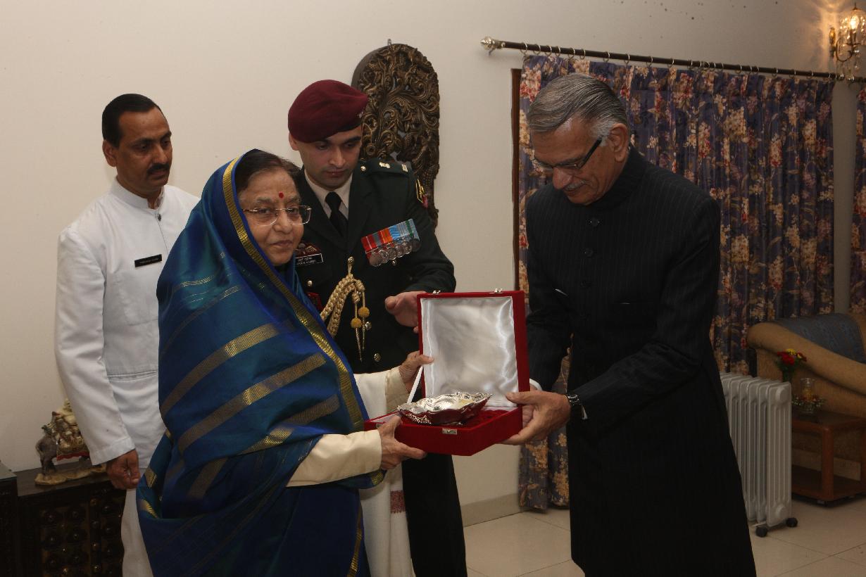 | Caption: | The President of India, Smt Pratibha Patil exchanging Gifts with the Governor of Punjab, Shri Shivraj Patil at Raj Bhavan of Chandigarh in Punjab on Nov 27, 2011 |