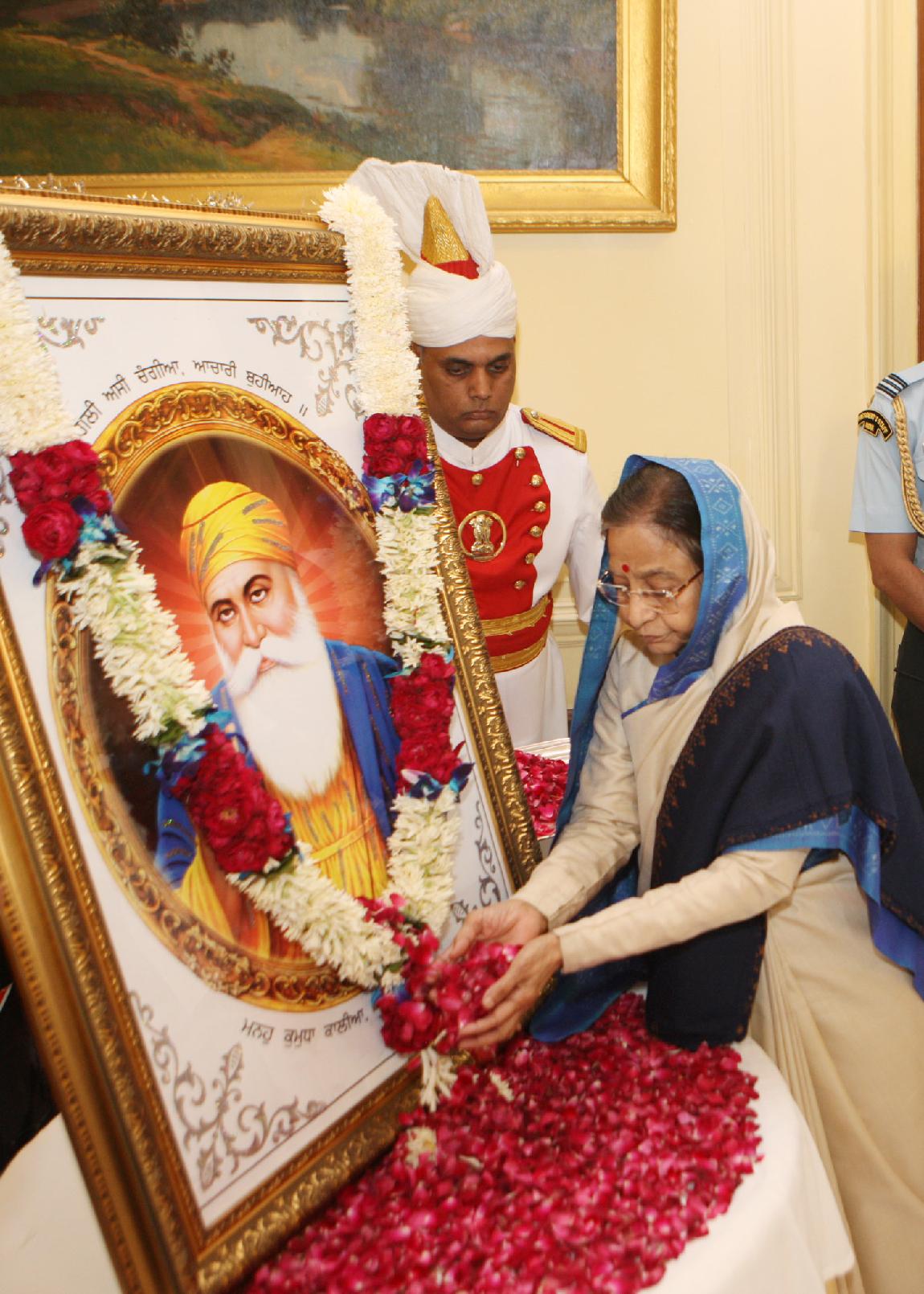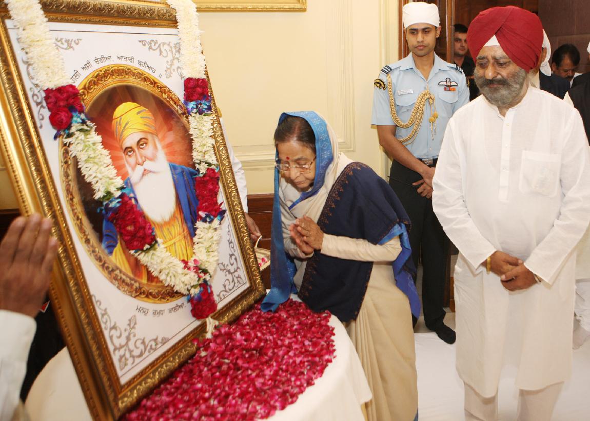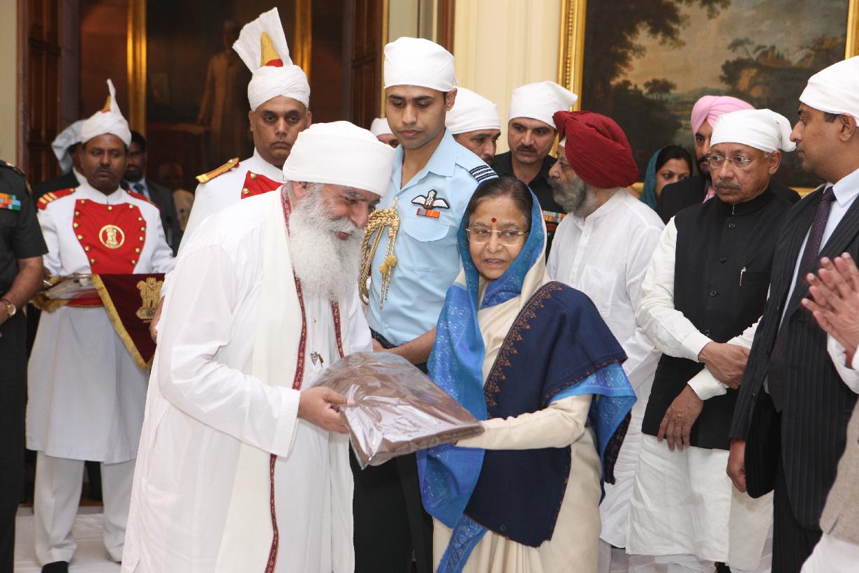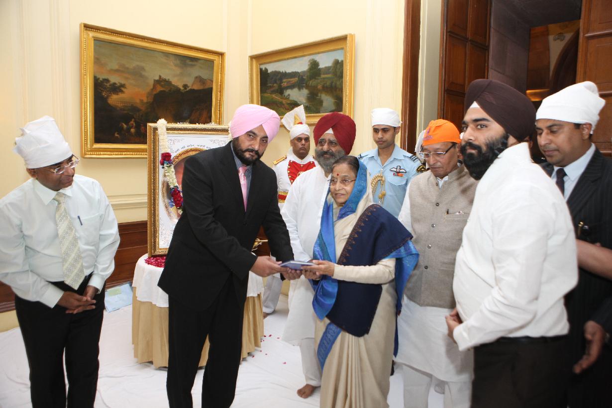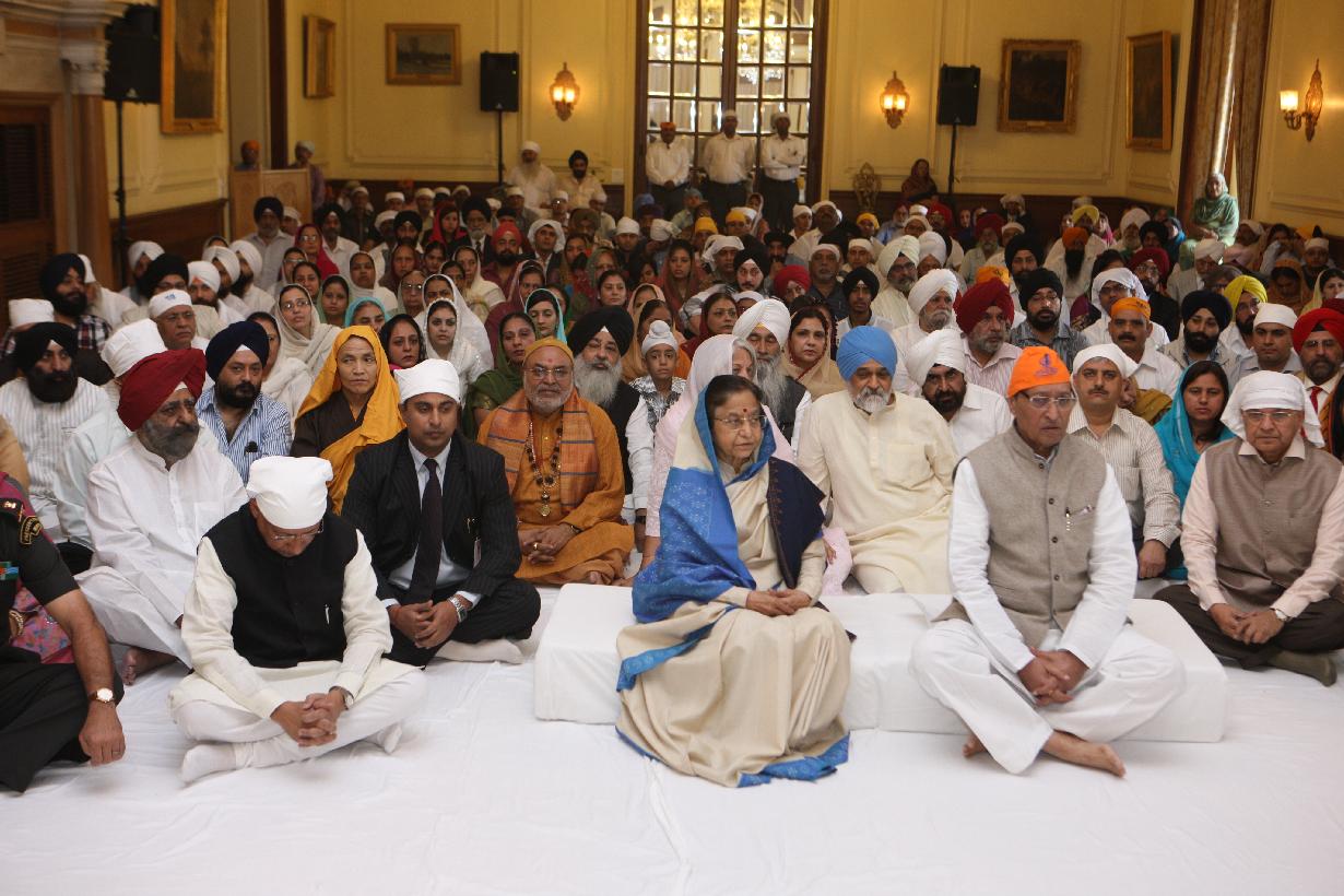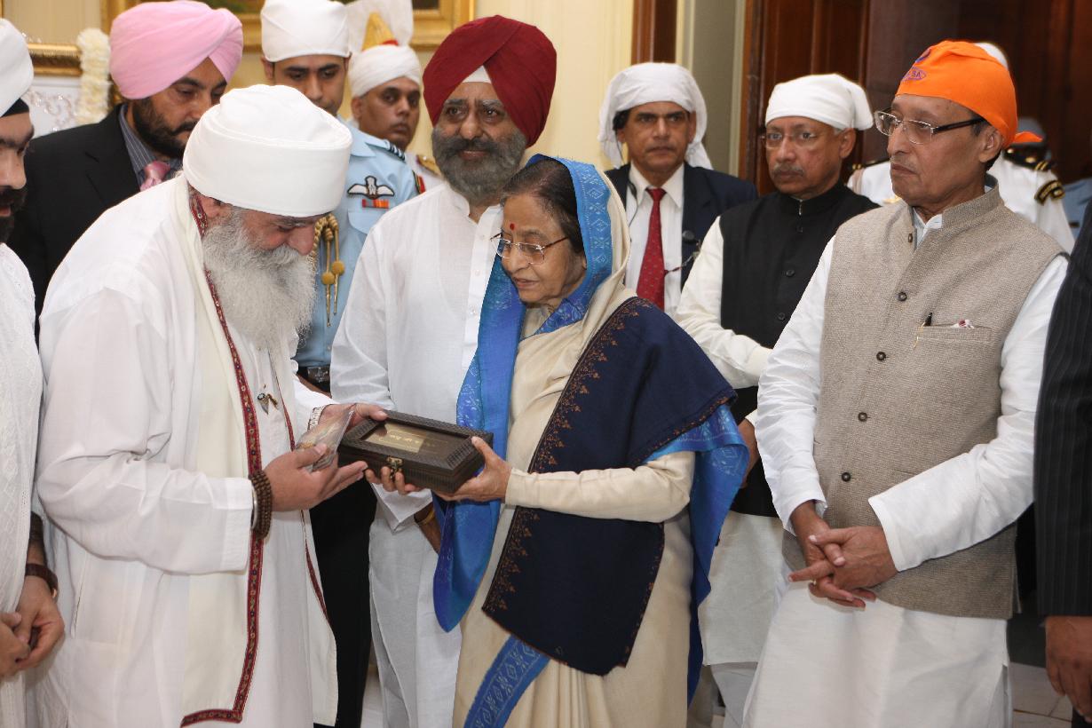 | Caption: | The President of India, Smt Pratibha Patil being presented with a Shawl, Kirpan and Saropa by Shri Balbir Singh at the Gurubani Recital on the occasion of the Birthday of Guru Nanak Devji at Rashtrapati Bhavan in New Delhi on Nov 10, 2011 |