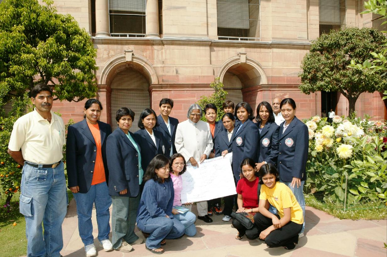 | Caption: | The Members of All Indian Women Mountaineering Expedition to Island Peak in Nepal led by Ms Bachendri Pal calling on the President of India, Dr A P J Abdul Kalam at Rashtrapati Bhavan in New Delhi on March 29, 2004 |