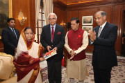 | Caption: | The President of India, Smt Pratibha Patil interacting with Dr T Subbarami Reddy and others at Rashtrapati Bhavan in New Delhi on Nov 15, 2011 |