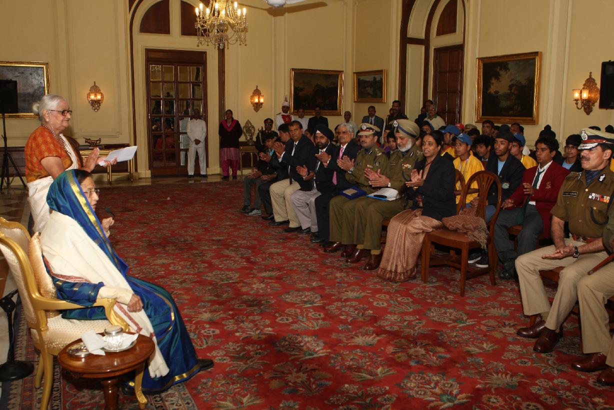 | Caption: | The President of India, Smt Pratibha Patil interacting with the School Children from Kupwara, Srinagar and New Delhi who Participated in the National Integration Peace Cricket Matches organized by the Guild of Service at Rashtrapati Bhavan in New Delhi on Nov 27, 2011 |