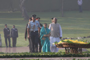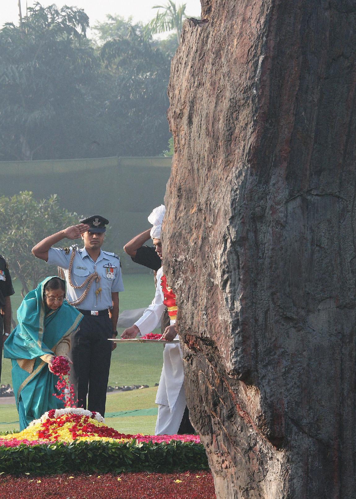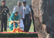 | Caption: | The President of India, Smt Pratibha Devisingh Patil paying floral tributes at the Samadhi of the Former Prime Minister of India, Late Smt Indira Gandhi on her 93rd Birth Anniversary at Shakti Sthal in New Delhi on Nov 19, 2010 |