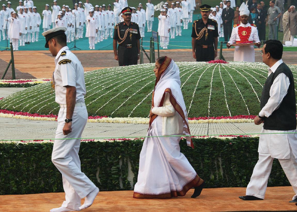 | Caption: | The President of India, Smt Pratibha Devisingh Patil paying floral tributes at the Samadhi of the Former Prime Minister of India, Pandit Jawaharlal Nehru on his Birth Anniversary at Shantivan in New Delhi on Nov 14, 2010 |