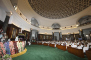 | Caption: | The President of India, Smt Pratibha Devisingh Patil at a Farewell Function Hosted by the Speaker of Lok Sabha, Smt Meira Kumar in the Central Hall of the Parliament House in New Delhi on July 23, 2012 |