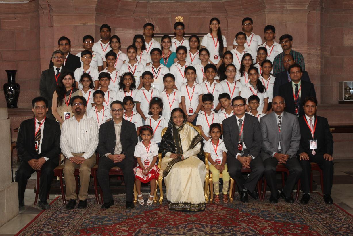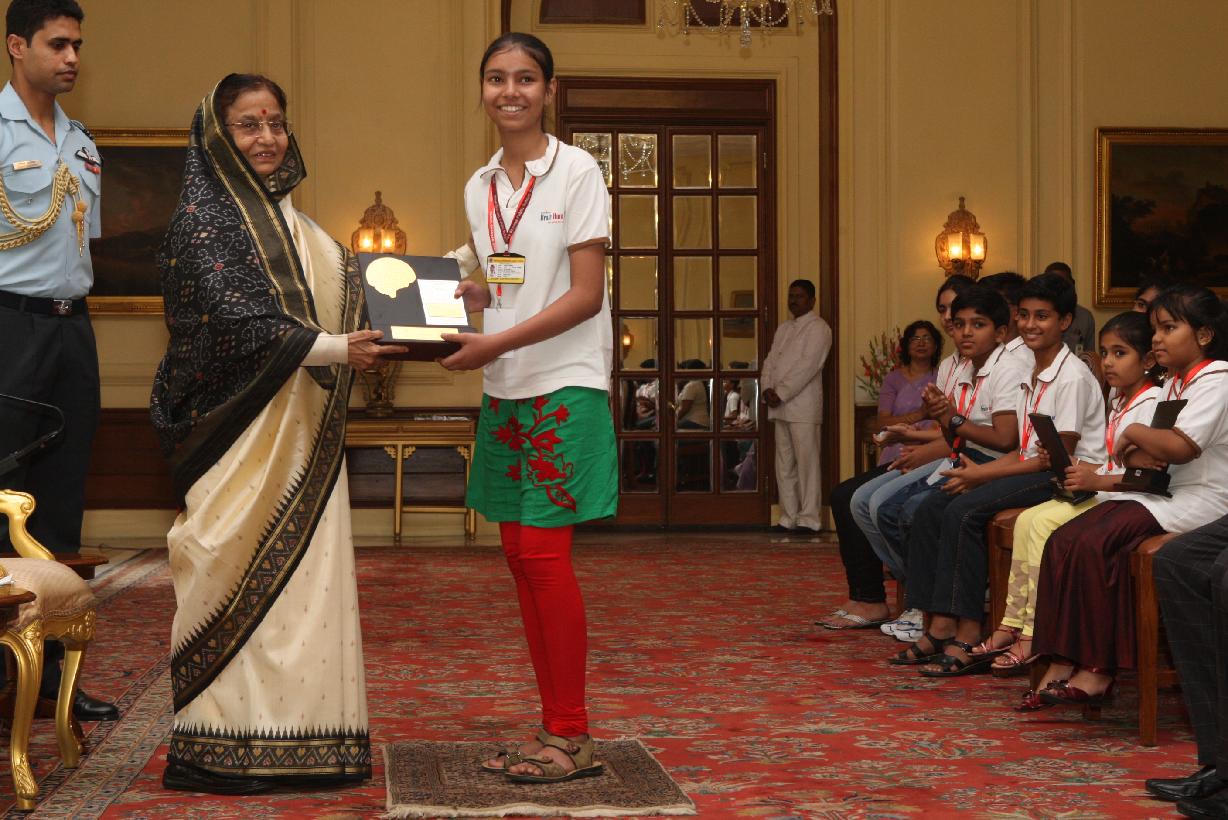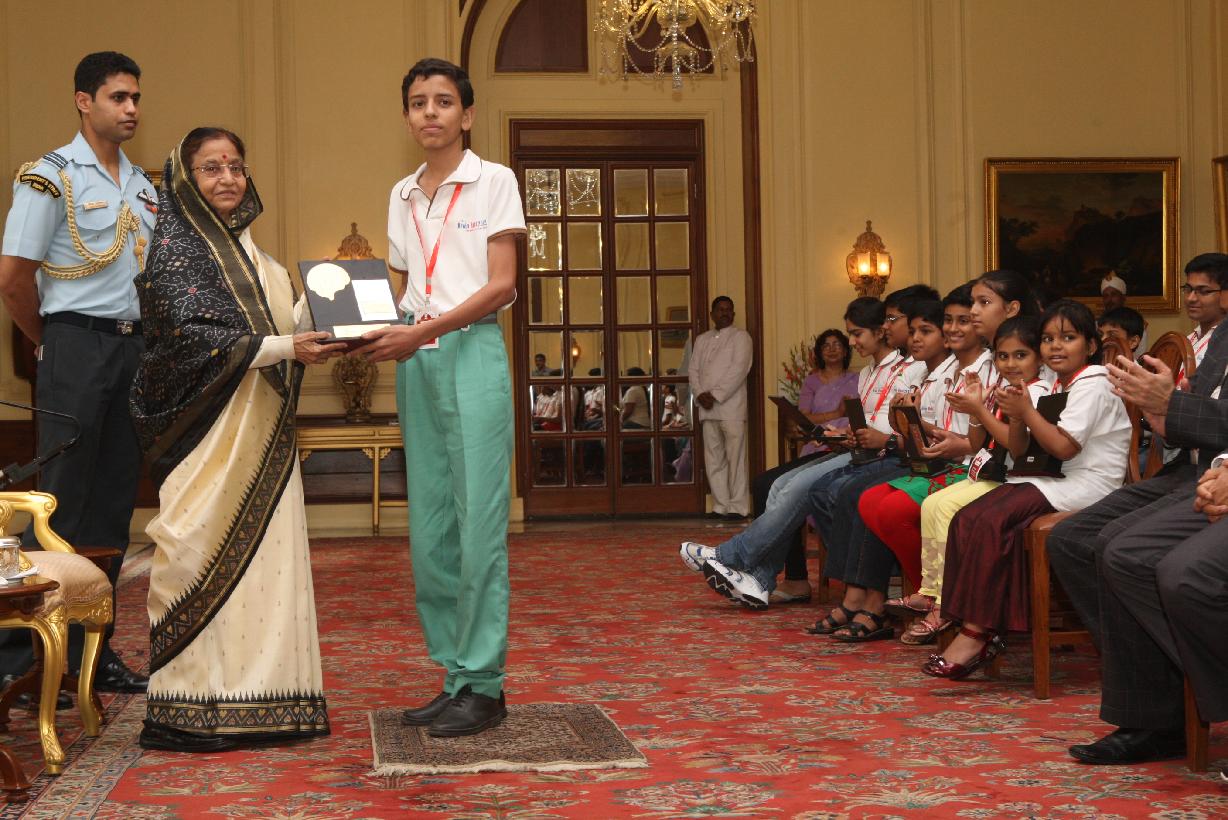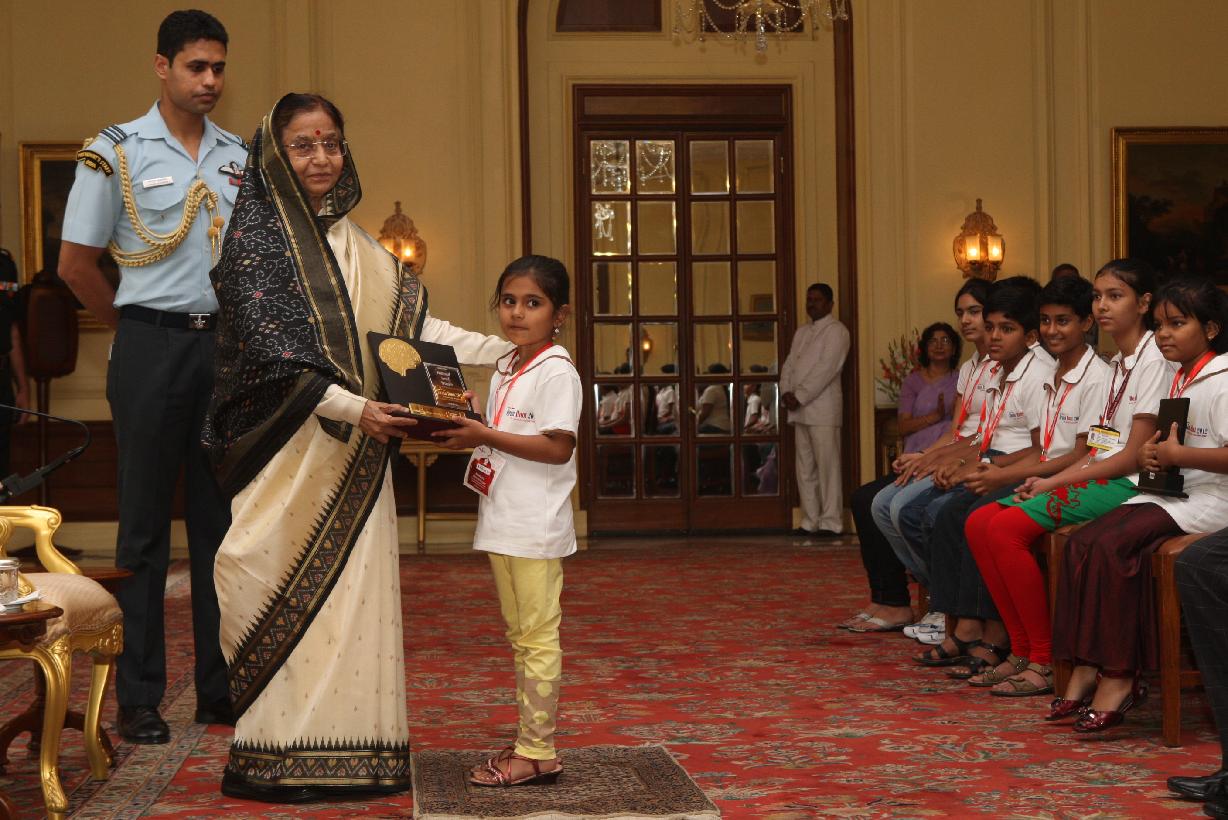 | Caption: | The President of India, Smt Pratibha Devisingh Patil giving Awards to Brain Hunt 2012 National Level Creative Competitor at Rashtrapati Bhavan in New Delhi on July 04, 2012 |