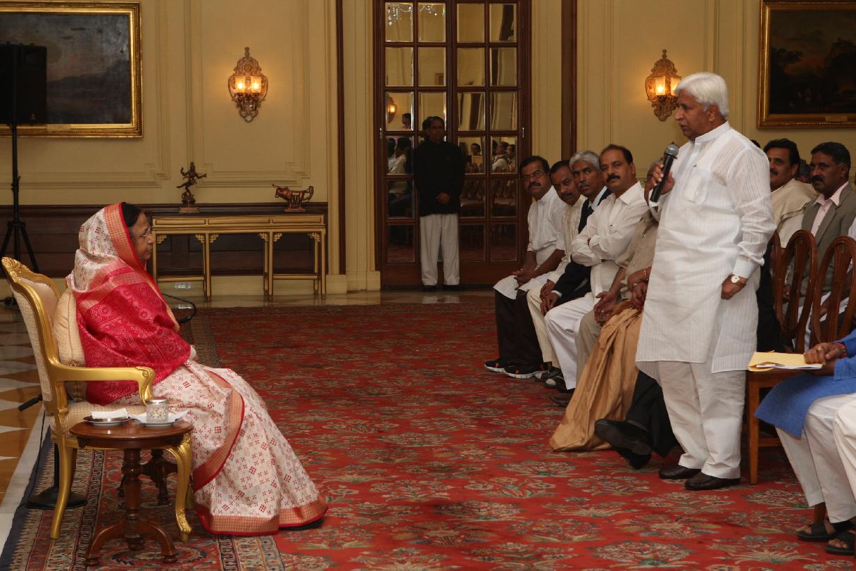 | Caption: | The President of India, Smt Pratibha Devisingh Patil interacting with Shri H K Patil and others at Rashtrapati Bhavan in New Delhi on Feb 07, 2011 |