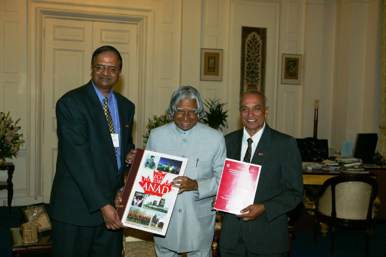 | Caption: | A Delegation of Deans Chairs from the Universities in Canada led by Shri Ravi Seethapathy Co-Chair Canadian Study entitled Institutional Linkages Academic Private Partnerships in Science and Technology Sectors calling on the President of India, Dr A P J Abdul Kalam at Rashtrapati Bhavan in New Delhi on March 29, 2004 |