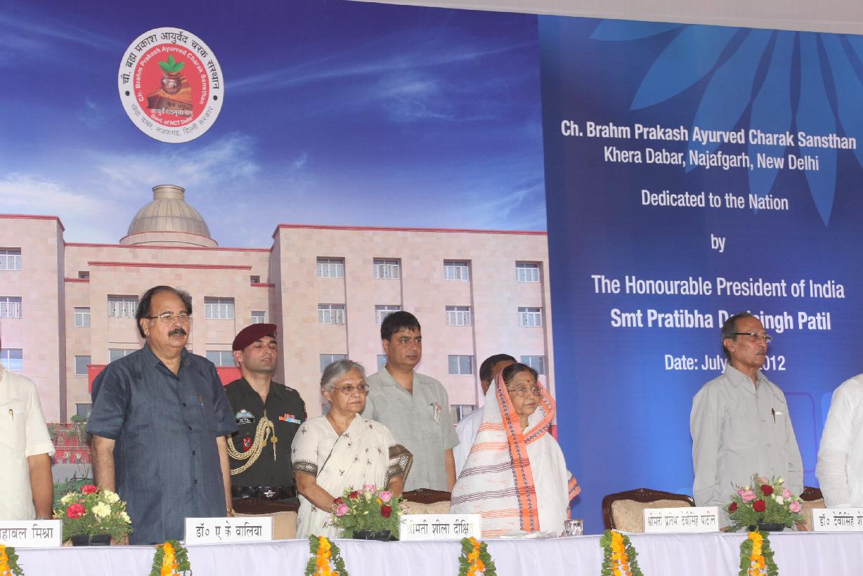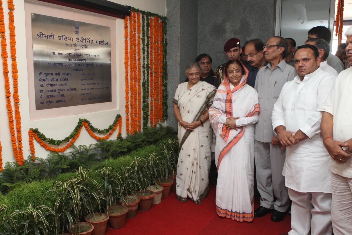 | Caption: | The President of India, Smt Pratibha Devisingh Patil inaugurating the Chaudhary Brahm Prakash Ayurved Charak Sansthan at Khera Dabar Near Najafgarh in New Delhi on July 05, 2012 |