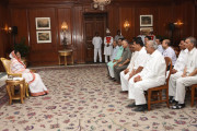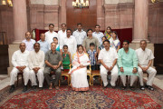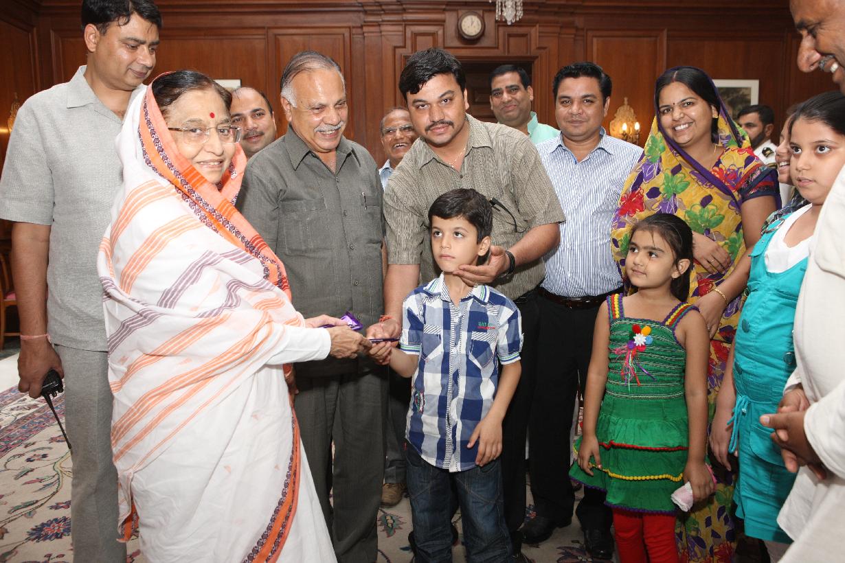| Caption: | The President of India, Smt Pratibha Devisingh Patil interacting with Shri Surendra Singh Sisodia and others at Rashtrapati Bhavan in New Delhi on July 05, 2012 |