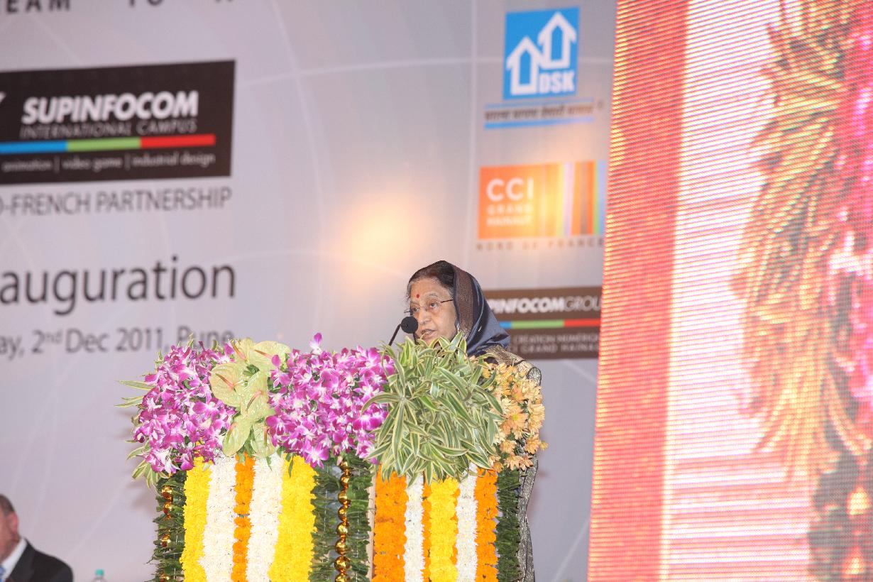 | Caption: | The President of India, Smt Pratibha Devisingh Patil at the Inauguration of the DSK Supinfocom International Campus and viewing an exhibition on the Campaign Against Female Foeticide of the D S Kulkarni Foundation at Pune in Maharashtra on Dec 02, 2011 |
