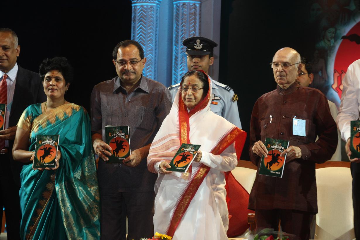| Caption: | The President of India, Smt Pratibha Devisingh Patil during at a Function of the Release of the Book, 'Rana Raginincha Desh', Authored by Smt Nilima Tapasvi at Pune in Maharashtra on April 13, 2011 |