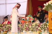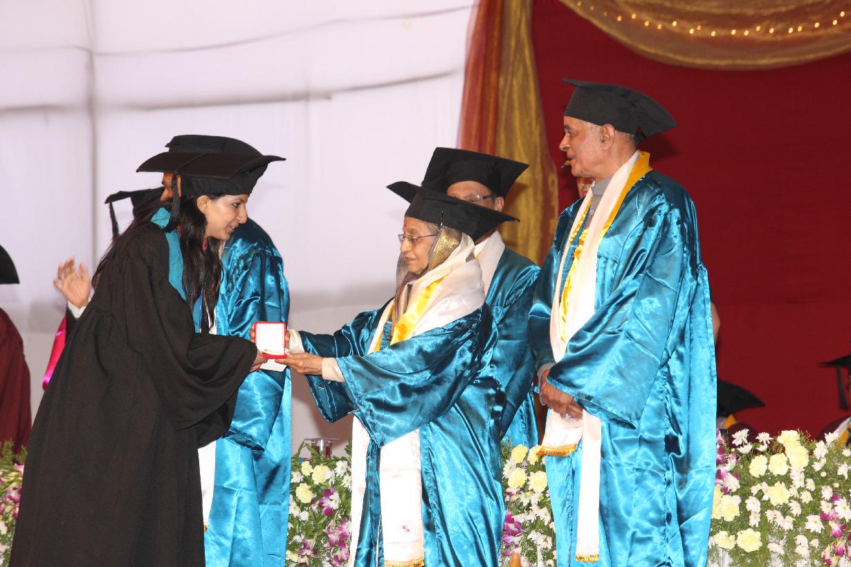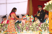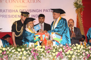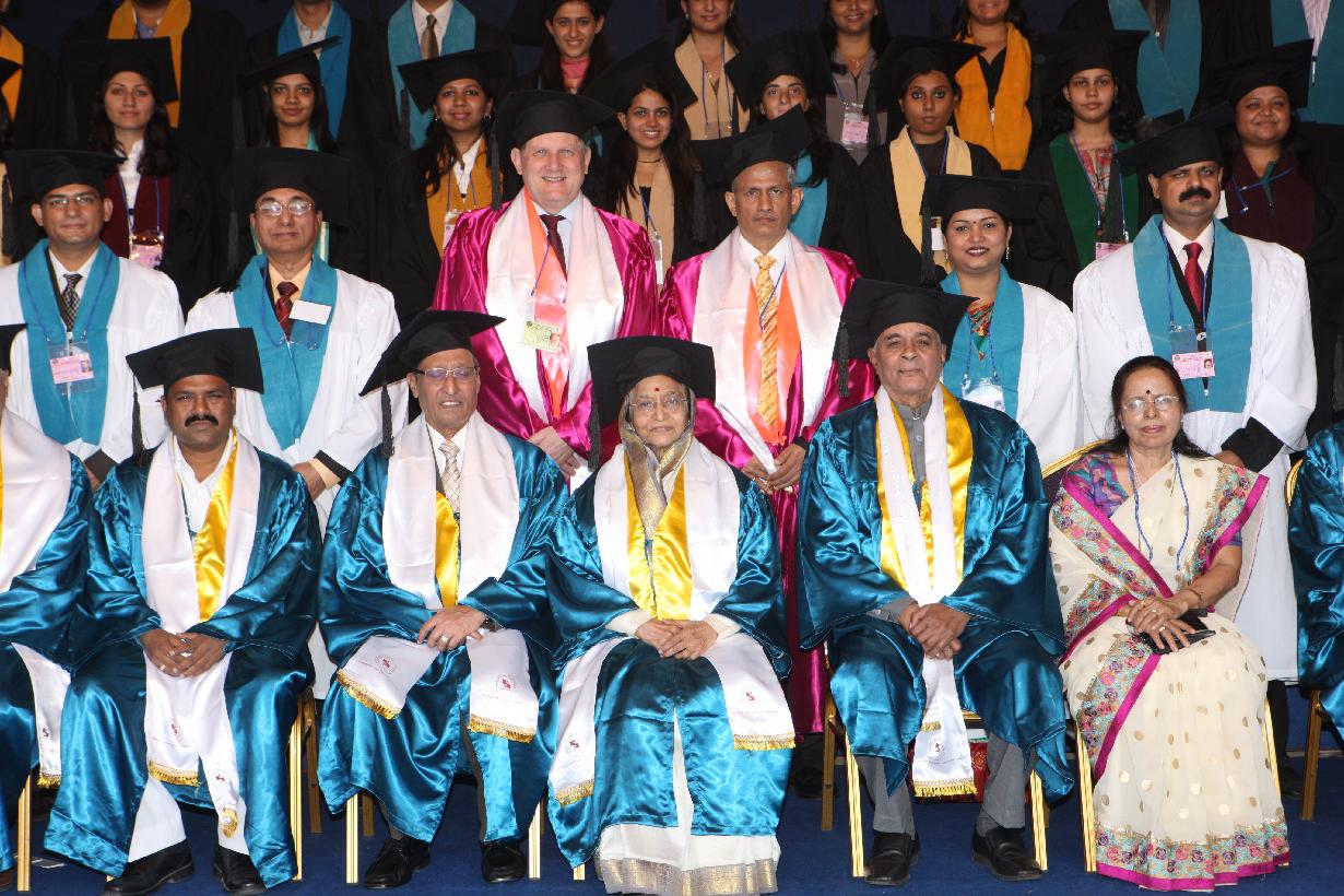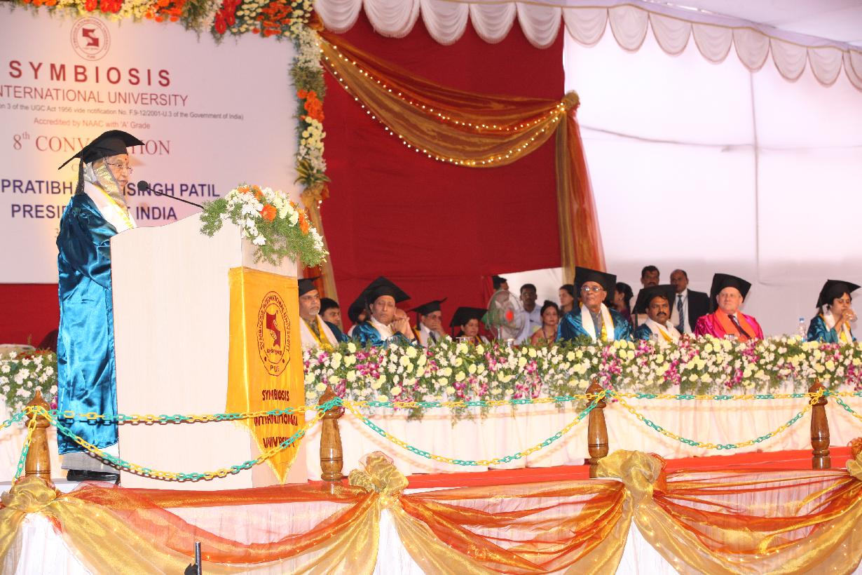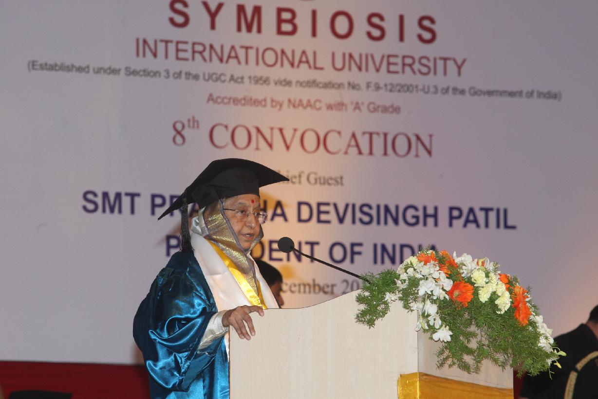 | Caption: | The President of India, Smt Pratibha Devisingh Patil during the 8th Convocation of the University and receiving the Flag of the United Nations from the Chancellor of the Symbiosis International University, Dr S B Mujumdar at Pune in Maharashtra on Dec 03, 2011 |