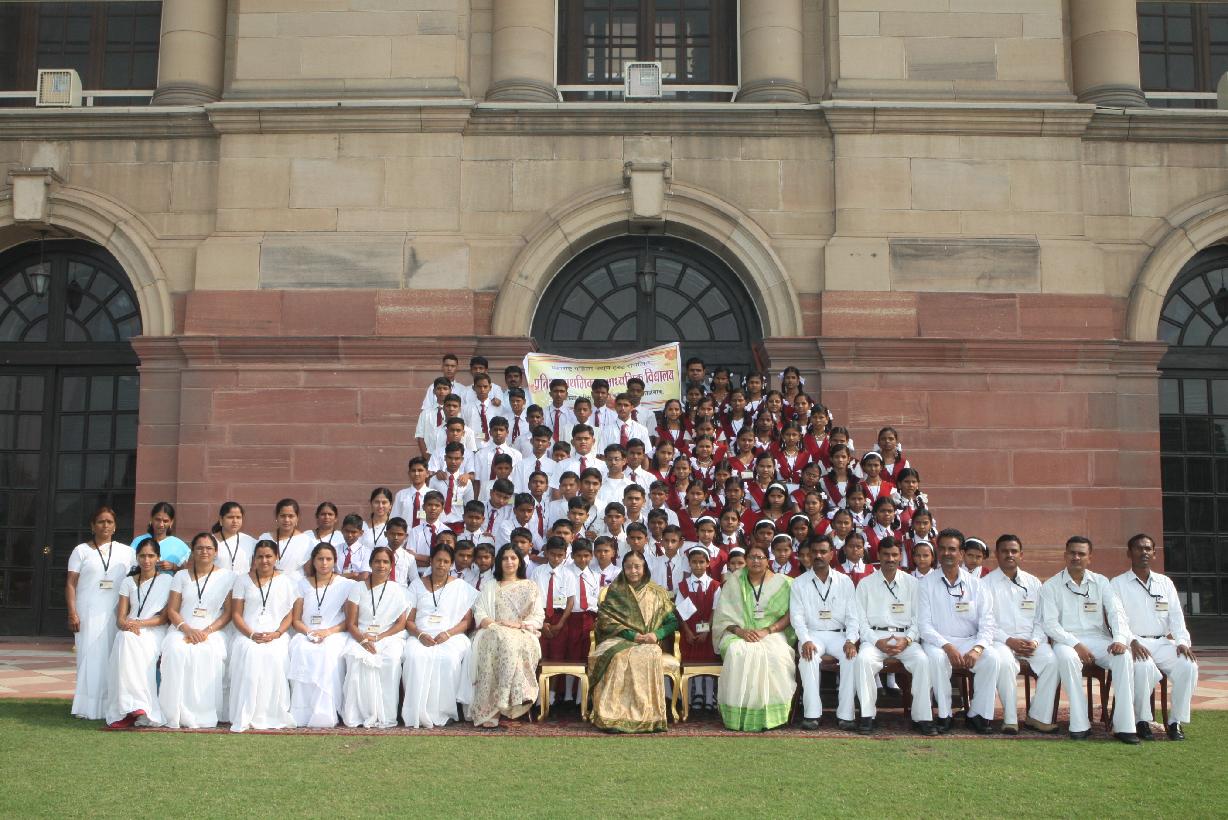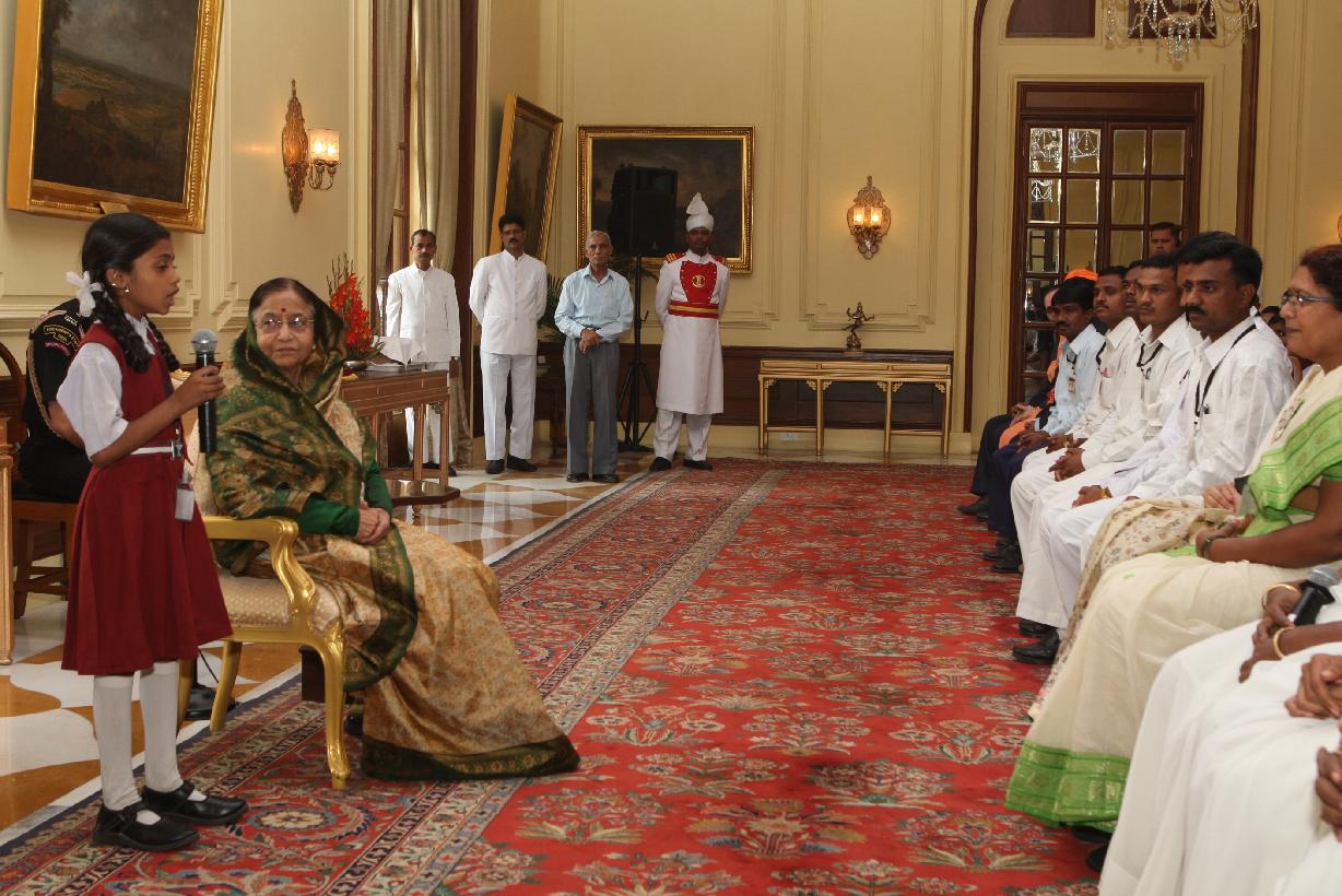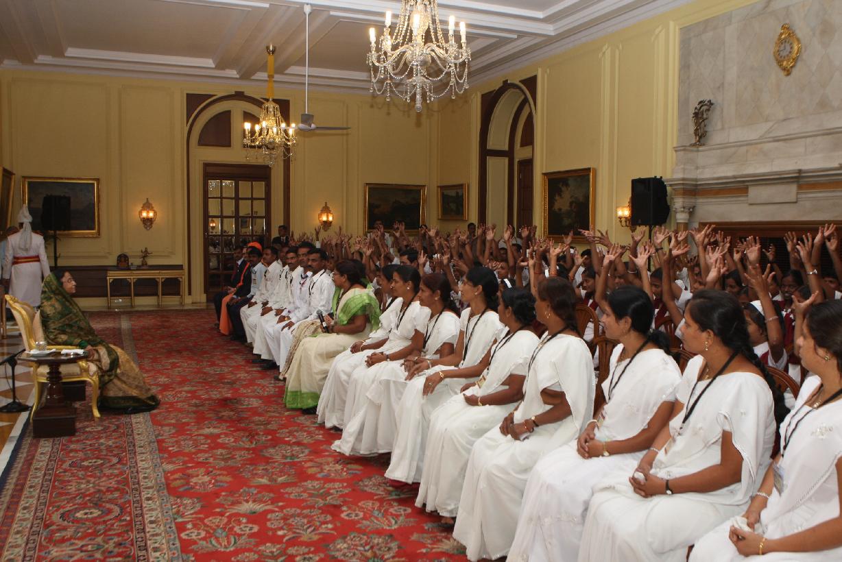 | Caption: | The President of India, Smt Pratibha Devisingh Patil interacting with the Students from Pratibha Prathmik Vidya Mandir and others at Rashtrapati Bhavan in New Delhi on Nov 12, 2010 |