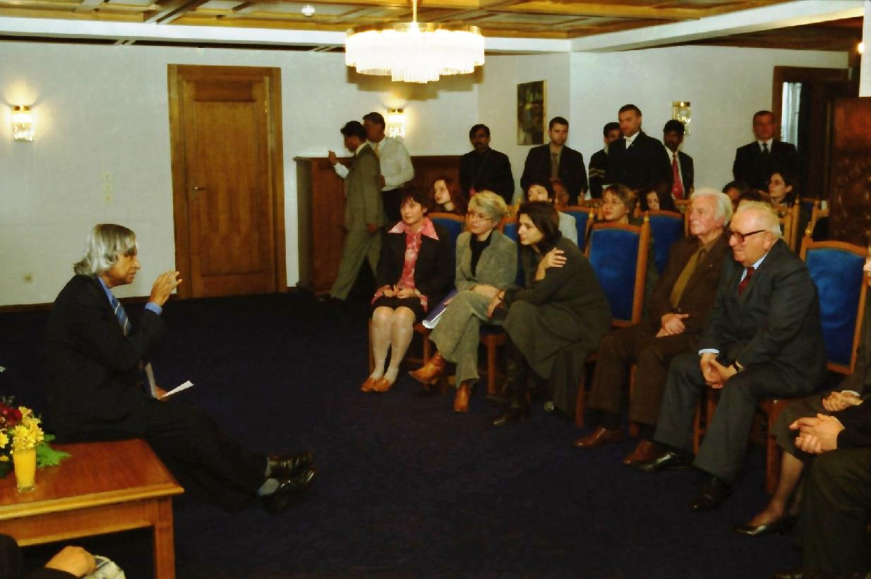 | Caption: | The President of India, Dr A P J Abdul Kalam meeting with the Scientists at Boyana Residence in Bulgaria on Oct 24, 2003 |
