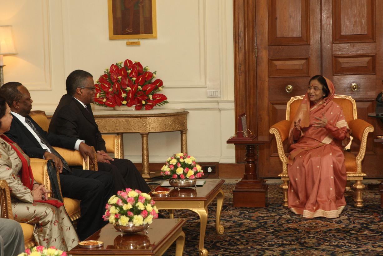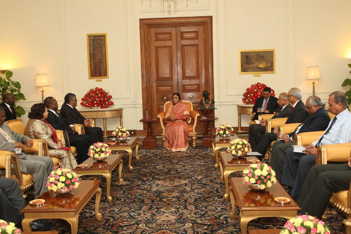 | Caption: | The Speaker of National Assembly South Africa, HE Mr M V Sisulu and the Chairperson of National Council of Provinces, HE Mr M J Mahlangu calling on the President of India, Smt Pratibha Devisingh Patil at Rashtrapati Bhavan in New Delhi on July 09, 2012 |