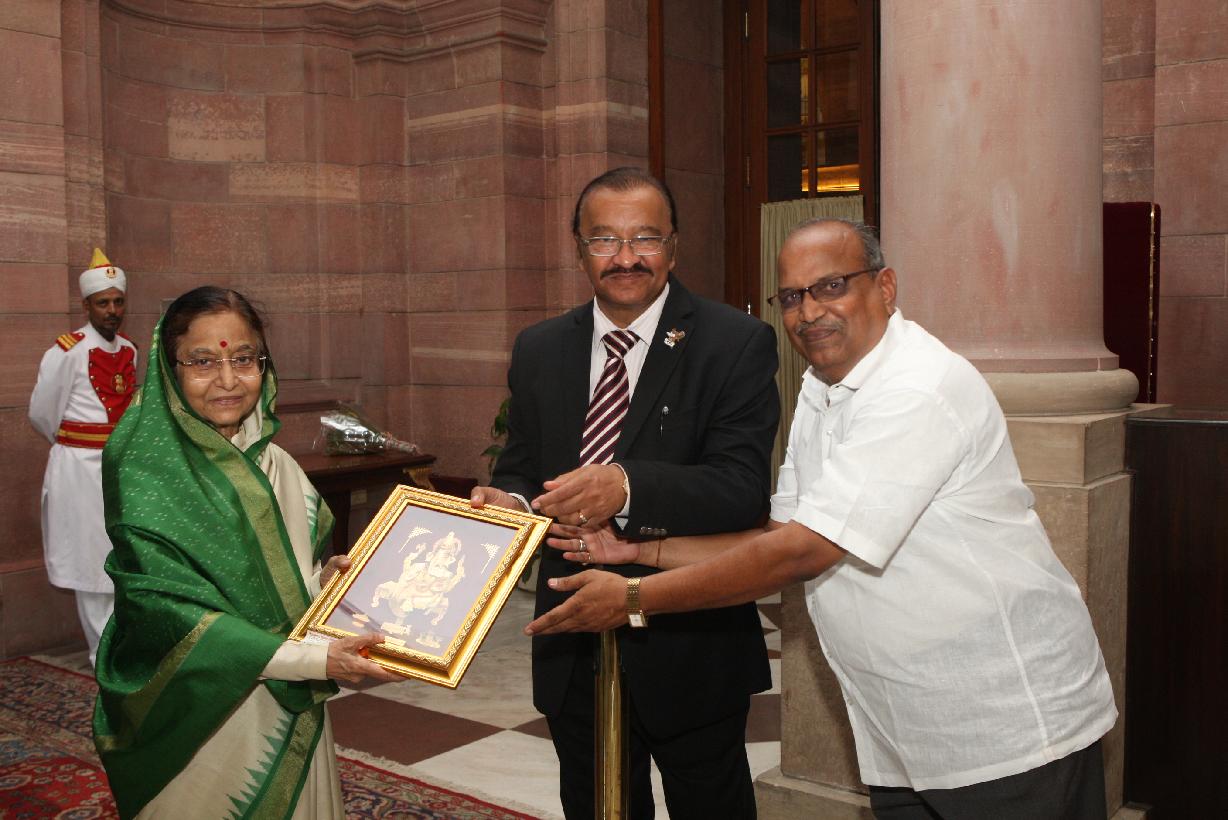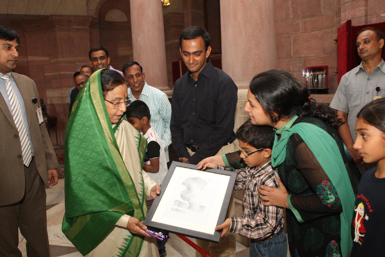 | Caption: | The President of India, Smt Pratibha Devisingh Patil interacting with Shri Vijay kumar Deepchand Choradia and others from Jalgaon at Rashtrapati Bhavan in New Delhi on July 10, 2012 |
