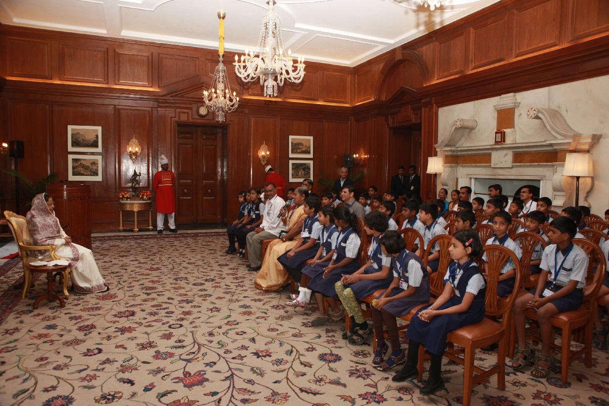 | Caption: | The President of India, Smt Pratibha Devisingh Patil interacting with the Primary School Students from Jalgaon (Maharashtra) at Rashtrapati Bhavan in New Delhi on Feb 18, 2011 |